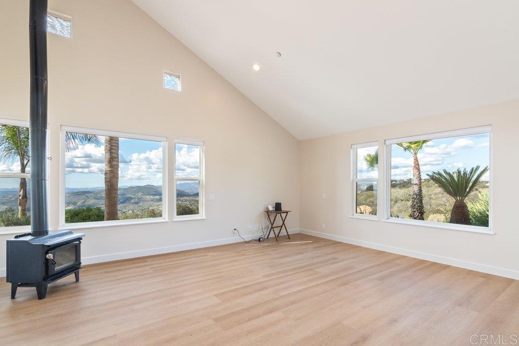 Captivating views that touch your spirit are offered by this thoughtfully renovated home uniquely sited on an exclusive gated private street featuring custom homes and no HOA. An abundance of windows drench this home in sunlight creating a bright, airy, & joyful ambiance. The owner has been working hard to get this special home ready for you with many updates & new amenities including flooring throughout, heat & air, kitchen appliances & quartz counters, lighting including recessed & exterior, ceiling fans, plumbing updates including all angle valves, bathroom upgrades, tankless hot water heater, security cameras, sophisticated window shades, freshly painted inside & out, and more. The outside of this 2.59 acre parcel was not ignored. Clearing around the house for fire prevention was done and new drought tolerant landscaping with automatic drip watering & attractive block retaining walls were installed. Even the roofs of the main house with its finished 2 car attached garage and the detached oversized 2 car garage/workshop have been professionally cleaned. This stylish home was cleverly designed to offer enhanced views to wake up to from the Main BR and to enjoy from the office area, library, living room, family room/dining area, as well as the kitchen sink. What a treat! Breathtaking sunsets that paint the sky in vibrant hues create a picturesque atmosphere. Move into this home and elevate your living experience to new heights. **Some photos feature virtual staging, the cargo container shown in photos is not included in the sale, and video/audio surveillance cameras are present.** ~~Private Road Agreement $392.45/Annual~~