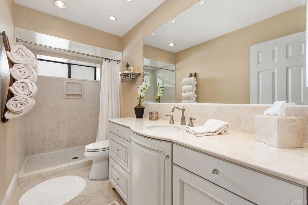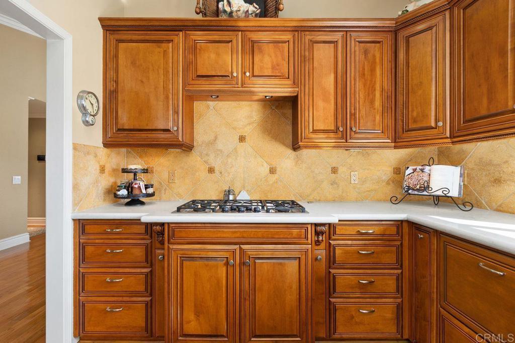 Don't miss this beautiful single-story home on a larger corner lot in the highly sought-after Shadowridge golf community. Offering 1,658 sq ft, this thoughtfully upgraded 2-bedroom, 2-bath residence combines comfort, style, and function. The gourmet kitchen is a standout, featuring hardwood floors, a cozy breakfast nook, abundant soft-close custom cabinetry, KitchenAid built-in refrigerator, 5-burner gas cooktop, Miele double oven, and two dishwashers—ideal for those who love to cook and entertain. The living and dining areas feature vaulted ceilings, hardwood floors, crown molding, a warm fireplace, and French doors that open to the backyard. The spacious guest bedroom boasts a good-size walk-in closet and a built-in desk with shelving, perfect for a student or someone who works from home. The adjacent guest bath has been completely remodeled and offers a large vanity and walk-in shower. The primary bedroom provides a peaceful retreat with vaulted ceilings, crown molding, French doors to the back patio, and an upgraded ensuite bath with dual sinks, soaking tub, separate shower, and a walk-in closet with custom shelving. The beautifully maintained backyard is perfect for outdoor living, featuring a full-length covered patio, built-in BBQ with sink, mini fridge, and bar seating for four. Additional highlights include a newer water heater and HVAC system, plus a 2-car garage with built-in shelving and a pull-down ladder for easy access to overhead storage. Low HOA dues of just $46 per month. Surrounded by the scenic Shadowridge golf course and conveniently located near Hwy 78, schools, shopping, parks, and restaurants—plus just 8 miles from the ocean—this home offers the best of North County living!