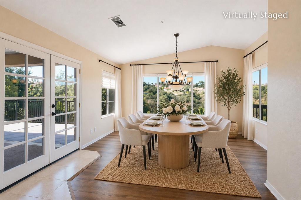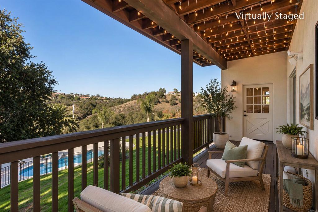 Welcome home to a stunning single-story Mediterranean-style retreat set at the end of a quiet cul-de-sac in the coveted Gird Valley hills of Fallbrook. This exceptional property blends luxury, comfort, and versatility, making it an ideal haven for today’s MULTIGENERATIONAL lifestyle with an attached 2000 SQFT 2-bedroom ADU with its own private entrance, polished finishes, and a dedicated laundry closet The single-story main residence showcases polished travertine floors, 3 spacious bedrooms, and beautifully arranged living spaces including a family room and formal dining room. The kitchen is thoughtfully designed to capture views from every angle, creating a light-filled culinary space that connects seamlessly to the surrounding hillsides. Expansive balconies off the living room and kitchen elevate daily living with sweeping vistas, while the grand playroom provides an impressive bonus area for recreation or gatherings. A fully fenced pool and spa perfect for relaxing under the California sun. Additional highlights include a PAID OFF SOLAR SYSTEM, a circular driveway, 5-car garage for the car enthusiast, and RV parking, delivering exceptional utility and long-term value. This remarkable estate offers the beauty, space, and lifestyle you’ve been dreaming of—truly a home you deserve.