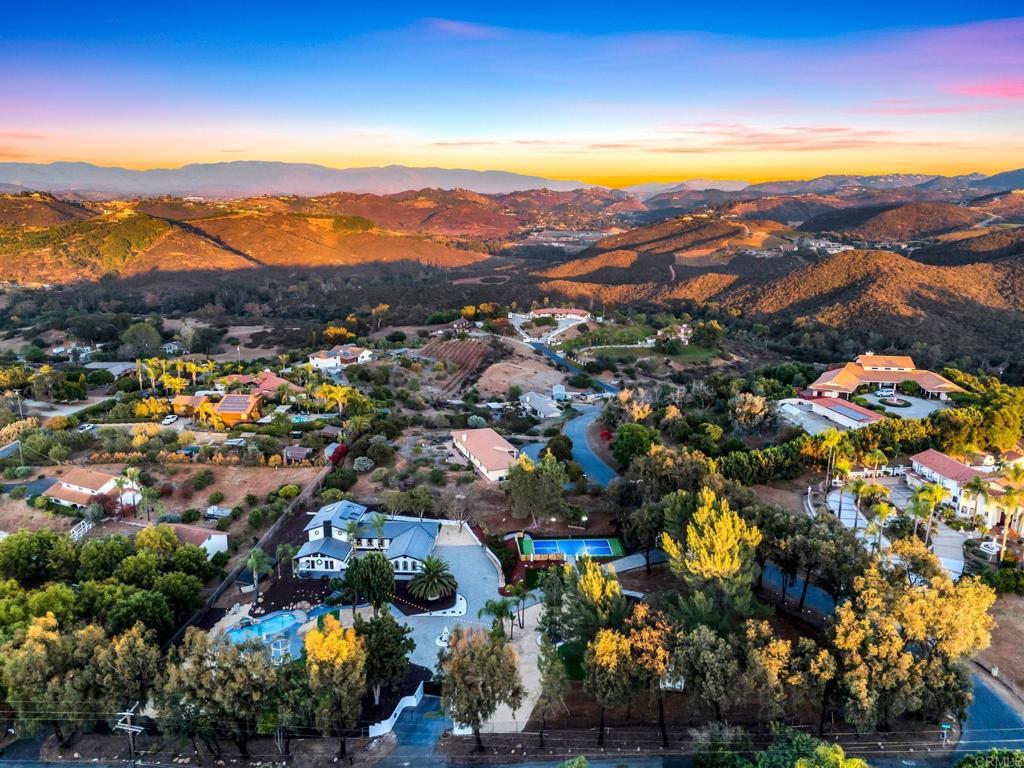 Experience the charm of country living with modern upgrades on a quiet street, just minutes from I-15, and close to shopping, dining, and parks for a perfect balance of convenience and tranquility. Set on 1.74 acres, this custom hacienda-style estate seamlessly blends rustic character with luxurious amenities. The spacious 3,116-square-foot home features 4 bedrooms, including 3 on the main floor, and two newly remodeled high-end bathrooms with updated flooring and premium finishes throughout. A beautifully crafted wrought iron baluster leads upstairs to the private primary bedroom with an en suite bath and walk-in closet. The home’s character is further enhanced by archways and four arched windows along the hallway, adding architectural interest. Just beyond the welcoming double-door entry, the family room boasts a vaulted ceiling and large windows, flooding the space with natural light, while a cozy, efficiently vented fireplace warms the main living area. This property’s outdoor offerings are truly one of a kind. The fully fenced grounds with dual gated access feature, space for an ADU, and an expansive garden area. Enjoy a range of entertainment options, from a dedicated pickleball court to a putting green and specially designed outdoor pods perfect for gatherings. A graceful fountain sits at the center of the driveway, adding elegance and serenity upon arrival. With mature native trees and a horse-themed sculpture, the estate is a haven for nature enthusiasts and equestrians alike. Complete with a solar-heated pool, utility shed, and breathtaking views, this estate perfectly combines country charm and modern luxury—ready to be yours!