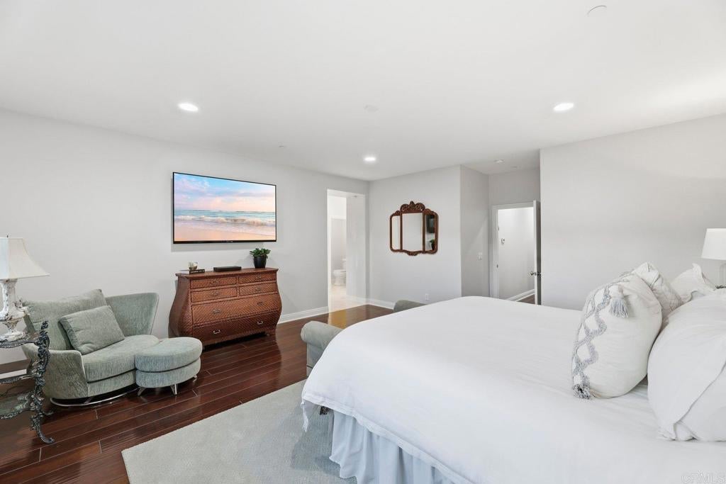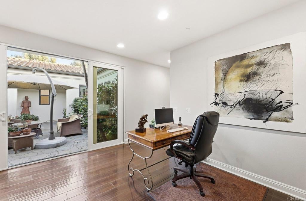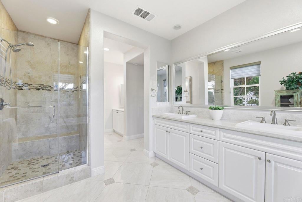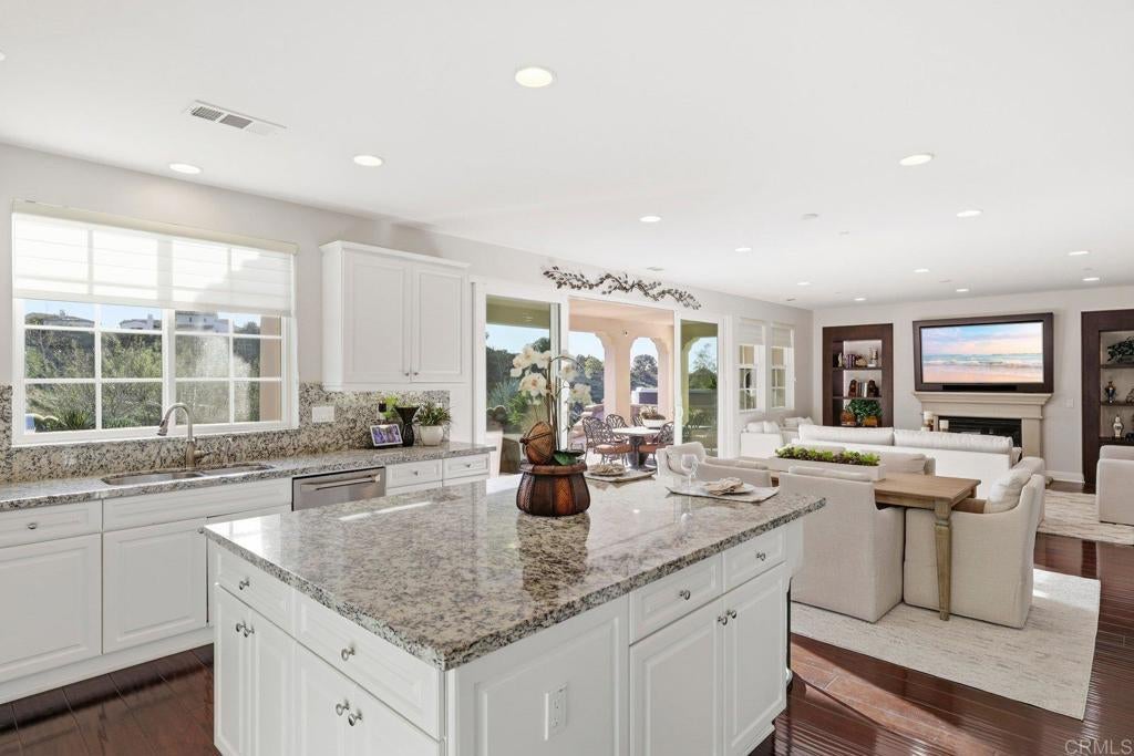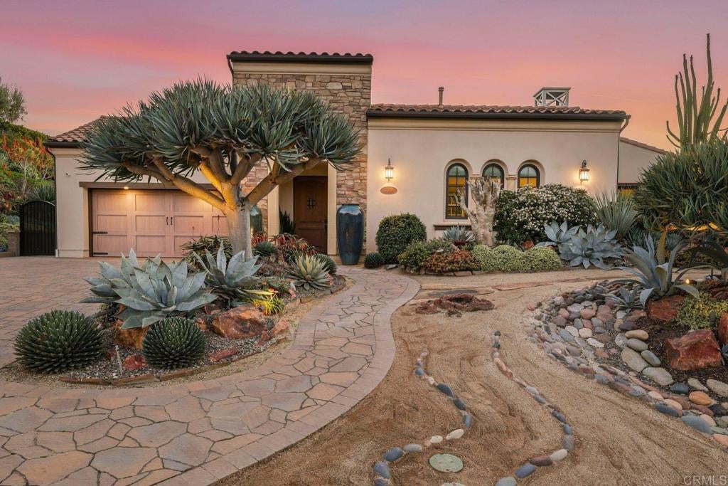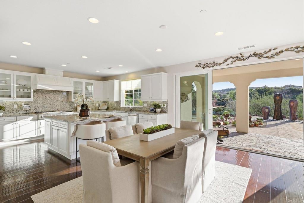 Indulge in luxury living within one of San Diego’s most sought-after gated communities. Located in The Lakes above Rancho Santa Fe, this single-level, 3,867 sq. ft. home sits on over half an acre with serene lake and canyon views. Set on a quiet cul-de-sac, this home features over $900,000 in thoughtfully curated upgrades and landscaping. Entering the house, a peaceful private courtyard welcomes you with a water fountain and shaded seating area. It’s here that you have access to the attached casita featuring a bedroom, full bath, and walk-in closet. Inside the main home, high ceilings and rich hardwood flooring create an impressive first impression. The chef’s kitchen includes white cabinetry, custom granite countertops and backsplash, Monogram appliances, a 6-burner gas range, dual ovens, a walk-in pantry, and a butler’s pantry with a wine fridge which opens to a spacious dining room that’s ideal for entertaining. The adjoining family room features built-in cabinetry, a cozy fireplace, and expansive sliding doors that open to the backyard and view vistas. The primary suite is a peaceful retreat with an en-suite bathroom offering dual sinks, a luxurious soaking tub, separate shower, and large walk-in closet. Additional spaces include a media room/office and a powder room with a seeded-glass window. All secondary bedrooms offer large en-suite bathrooms. The entire property, which has been featured in several books and magazines, has been thoughtfully designed by renowned, award-winning landscape designer Michael Buckner and includes many rare and unique plant specimens that provide a beautifully rich arrangement of colors and textures. The backyard is a true oasis and includes a covered California room which is perfect for dining, entertaining and enjoying true outdoor living. A striking water feature, an inviting fire feature, and peaceful views of the lake complete this beautiful outdoor retreat. Additional highlights of the home include fully owned solar, ensuring energy efficiency, a large 3-car garage with epoxy flooring and abundant storage space with built-in cabinets and two tankless water heaters. The Lakes community offers family-friendly living and is located within the highly rated, award-winning Poway Unified School District. The Crosby Club at Rancho Santa Fe is just down the street and acts as the social hub of the community where you can enjoy world-class golf, dining & entertainment, and fitness facilities that include pool, tennis, and pickleball. The home is conveniently located just 12 minutes from the Village in Rancho Santa Fe and a short drive to Del Mar and Solana Beach, providing easy access to the best of Southern California's lifestyle, including 25 golf courses, 17 parks, and 4 hiking reserves within 10 miles. With over 79 restaurants within 5 miles, the home is also conveniently located near the I-15 and CA-56 freeways.