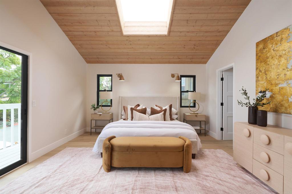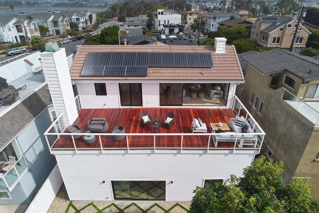 The neighbor owns the air rights to the one story home behind the subject property to preserve the ocean views!! Please ask listing agent for more details. Completely reimagined from top to bottom, this beyond-stunning residence offers a rare blend of coastal sophistication and modern design, all in one of Carlsbad’s most desirable locations. Every inch of the home has been meticulously updated with high-end finishes and thoughtful detail, creating a truly turnkey experience. At the heart of the home lies an incredible chef’s kitchen that rivals any professional setup. Anchored by an oversized island with waterfall-edge quartzite countertops, it features a full suite of Viking appliances—including a built-in refrigerator, dual-oven 8-burner range—making it as functional as it is beautiful. New custom cabinetry and Delta fixtures complement the space, while Fleetwood exterior sliding doors invite natural light and effortless indoor-outdoor flow. The kitchen opens to the main living and dining areas, where engineered hardwood flooring, a sleek fireplace, and a stylish built-in bar with a wine fridge create an inviting setting for everyday living and entertaining. The first floor includes two spacious bedrooms, each with its own en suite bath, offering comfort and privacy for family or guests. The second level is dedicated to the primary suite, a true sanctuary showcasing a vaulted, wood-clad ceiling with a large skylight—bringing warmth, texture, and an airy coastal feel. The spa-inspired bathroom impresses with a custom-built vanity, quartzite counters, and Delta fixtures, along with an oversized walk-in shower and freestanding soaking tub. A separate custom-designed walk-in closet provides beautifully organized storage for an elevated everyday experience. On this level, you’ll also find a finished bonus room, ideal as a kids’ playroom, creative space, or additional storage. Every one of the four bedrooms includes its own en suite bath, each featuring quartzite or marble countertops and refined designer finishes, while three-panel shaker doors add a consistent sense of modern craftsmanship throughout the interior. Energy-efficient upgrades include solar, a new air conditioning and furnace system with multi-zone capability, and Anderson Fiberx windows that enhance both efficiency and aesthetic appeal. On the uppermost level, discover a show stopping entertaining room where vaulted, beam-accented ceilings and expansive glass doors frame breathtaking ocean views. Designed for effortless gatherings, this sophisticated retreat offers multiple seating areas and a built-in counter with beverage fridge—perfect for sunset cocktails or relaxed weekend lounging. Step through the Fleetwood sliders to a 600+ sq. ft. deck with new wood decking, where the Pacific Ocean provides a cinematic backdrop for unforgettable evenings under the open sky. Located just blocks from the beach and the heart of Carlsbad Village, this home puts coastal living at your doorstep—enjoy morning walks along the sand, boutique shopping, top-rated dining, and the relaxed charm that defines this seaside community. Combining exceptional craftsmanship, thoughtful design, and a premier coastal location, 2465 Garfield stands as a showcase of modern Carlsbad living—offering a rare opportunity to own a home that is as functional as it is unforgettable.