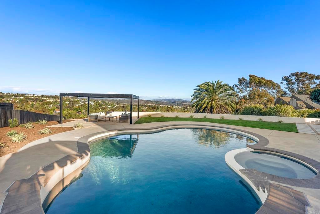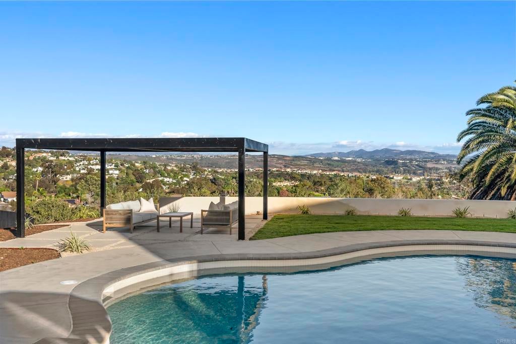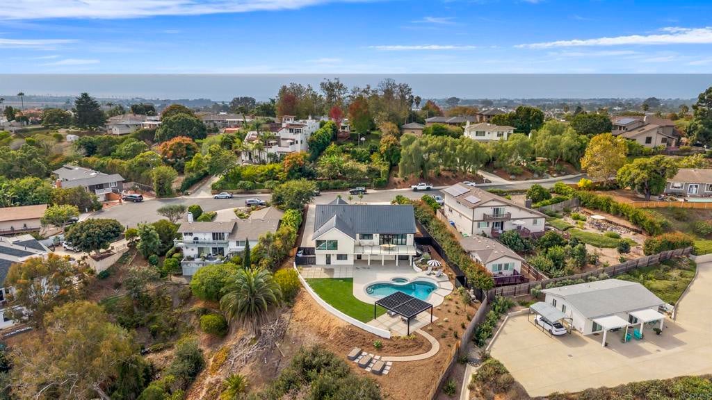 Perched high in Olde Carlsbad’s coveted Skyline neighborhood, this new construction coastal retreat captures the soul of California living—where sunlight pours through walls of glass and every day feels like a getaway. Just 2 miles to the beach, this open-concept design lives like a single story, blending effortless flow with an understated sense of luxury. Step outside to nearly half an acre of resort-style living: sparkling pool and spa, raised garden beds, and sunlit entertainment spaces designed for connection, celebration, and calm. Downstairs, a private lower level extends the experience with a media lounge, wet bar, three more bedrooms, and a chic attached JADU—perfect for guests or multi-generational living. Every inch, from the circular drive to the hand-curated finishes, reflects a level of detail and warmth that feels rare. Quiet cul-de-sac. No highway hum. Just sunrise views, coastal breezes, and the sense that you’ve finally arrived home.