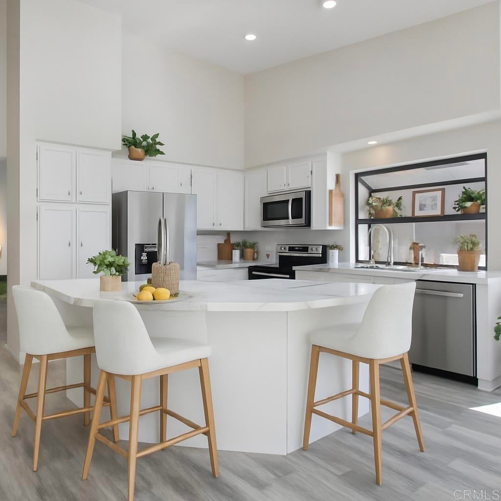 This residence offers a balance of elegance and functionality, beginning with a private, cozy living room featuring a classic fireplace—an inviting retreat separate from the main entertaining spaces. The heart of the home unfolds in the recently remodeled kitchen and dining area, where an open-concept design is enhanced by soaring ceilings and abundant natural light. The kitchen features quartz countertops, stainless steel appliances, and elevated finishes, flowing seamlessly into the dining space and adjacent lounge nook—ideal for sophisticated gatherings or relaxed everyday living. The primary suite is a serene escape, highlighted by high ceilings, a walk-in closet, and a beautifully remodeled en-suite bathroom with modern finishes. Three additional bedrooms provide versatility for guests, a home office, or creative space. New windows and sliding glass doors throughout the home enhance energy efficiency while elevating the home’s overall aesthetic. Outdoors, the property offers exceptional utility with a custom-built 60-foot storage shed, plus an additional shed—perfect for storage, hobbies, or recreational equipment. Residents enjoy a low HOA with access to a nearby community pool. Ideally located near Oceanside Golf Course, the historic San Luis Rey Mission, Camp Pendleton, and just six miles from the beach, this home delivers understated luxury, privacy, and coastal convenience. Sellers are licensed California real estate agents.