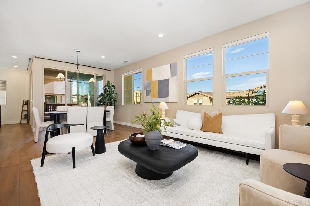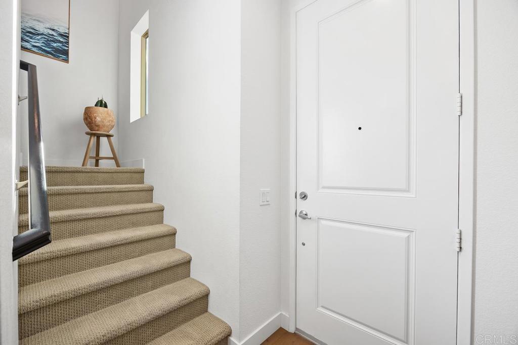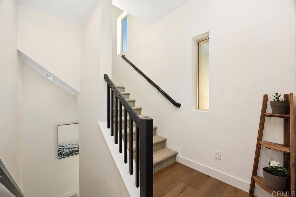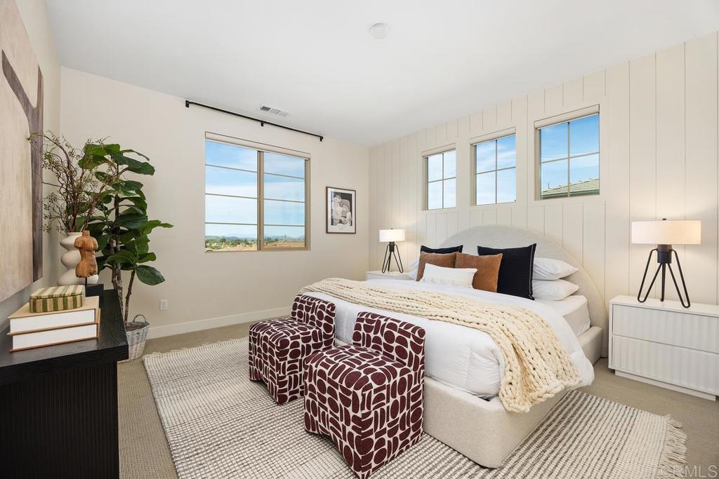 Welcome to 1205 Via Lucero - a beautifully upgraded and thoughtfully maintained end-unit townhome in the highly desirable Pacific Ridge neighborhood of Oceanside. This near-new residence boasts 4 bedrooms and 3½ baths across approximately 1,824 square feet of living space, offering a bright, open layout perfect for families, remote work, and everyday living. This stunning tri-level shows like a model, with well-planned and purposeful designer upgrades throughout. Featuring only premium finishes and systems, this home far exceeds its current list value. Upon entry, you’ll notice a generous and inviting patio setting that encourages friendly neighborhood interactions and outdoor living. The first level offers a full bathroom showcasing black hexagonal floor tile, along with a first-level bedroom featuring a walk-in closet, ideal for visiting guests or a home office. As you ascend into the main living space, you’ll appreciate soaring ceilings, upgraded 4-inch baseboards, and newer plush carpet. The open-concept design seamlessly connects the kitchen, dining, and living areas, highlighted by elevated Moroccan zellige tile, real hardwood floors, contemporary lighting fixtures, sleek window coverings, and sand-colored cabinetry with stylish pulls and fixtures throughout. Thoughtful details catch the eye, including designer wall coverings and an ornate copper towel rack in the second-level powder room, adding an extra layer of elegance. On the third level, you’ll find the spacious primary en-suite retreat. Stylish shiplap adorns the walls, rolling hill views draw you in, and the spa-like private bath invites relaxation. Featuring updated cabinetry, a walk-in shower, oversized soaking tub, double vanity, and a generous walk-in closet, this serene space truly feels like a personal sanctuary. Additional upgrades include a low solar lease with an unheard-of locked-in rate in perpetuity, a backup battery for power outages, and a central forced heating and air conditioning system. Set within the gated Pacific Ridge community, this townhome enjoys the best of the North County lifestyle; a family-oriented neighborhood with well-maintained common areas and resort-style amenities including pools, a spa, tot lots, and BBQ areas, along with easy access to shopping, dining, excellent schools, parks, and recreation. Just minutes from beaches, the harbor, and coastal attractions, this home is more than just a place to live - it’s a gateway to the quintessential Southern California lifestyle. Whether relaxing inside your thoughtfully updated home or enjoying the vibrant community and convenience of Oceanside living, 1205 Via Lucero is a standout opportunity in today’s market.