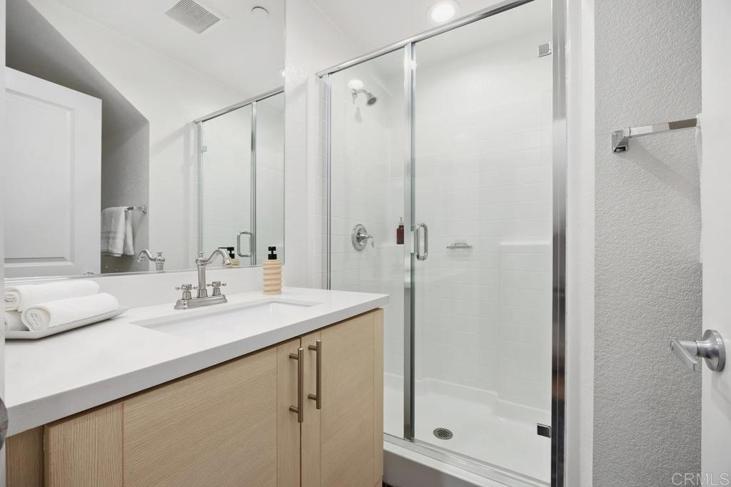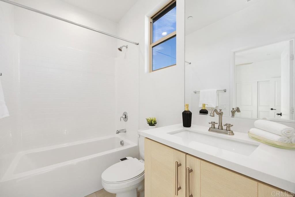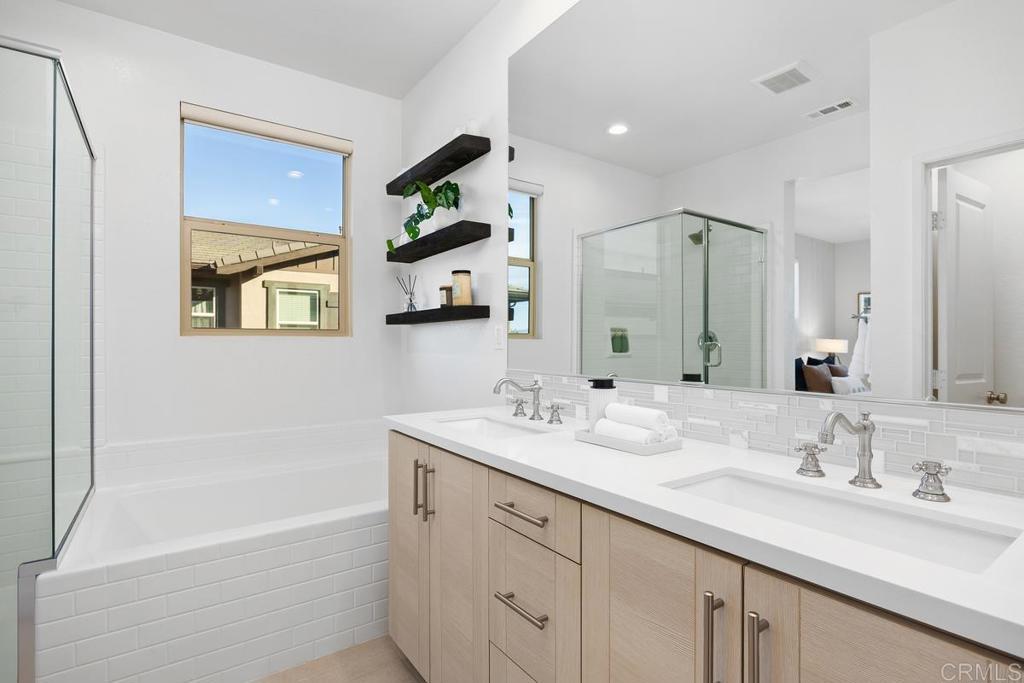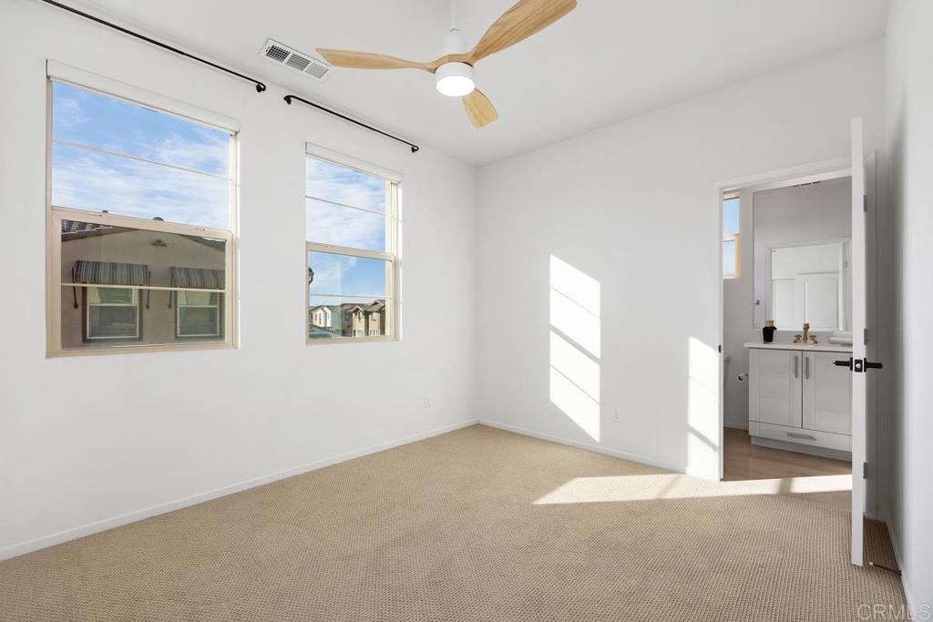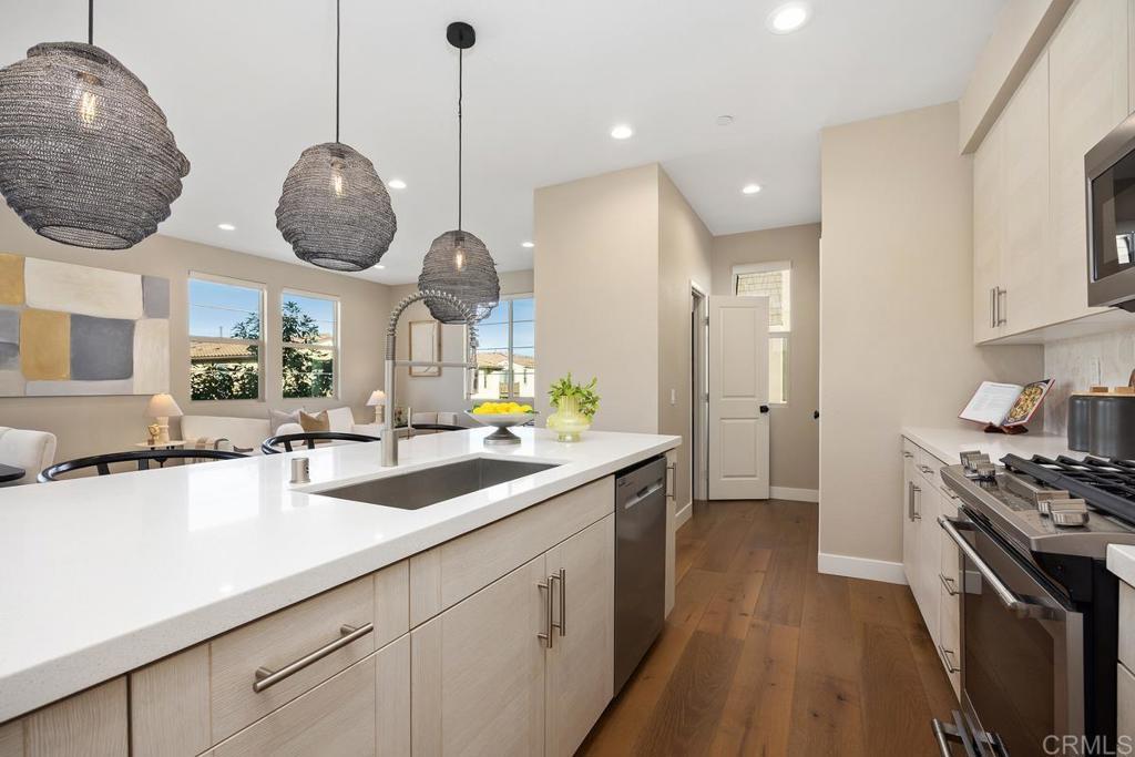 Welcome to 1205 Via Lucero - a beautifully upgraded and thoughtfully maintained end-unit townhome in the highly desirable Pacific Ridge neighborhood of Oceanside. This near-new residence boasts 4 bedrooms and 3½ baths across approximately 1,824 square feet of living space, offering a bright, open layout perfect for families, remote work, and everyday living. This stunning tri-level shows like a model, with well-planned and purposeful designer upgrades throughout. Featuring only premium finishes and systems, this home far exceeds its current list value. Upon entry, you’ll notice a generous and inviting patio setting that encourages friendly neighborhood interactions and outdoor living. The first level offers a full bathroom showcasing black hexagonal floor tile, along with a first-level bedroom featuring a walk-in closet, ideal for visiting guests or a home office. As you ascend into the main living space, you’ll appreciate soaring ceilings, upgraded 4-inch baseboards, and newer plush carpet. The open-concept design seamlessly connects the kitchen, dining, and living areas, highlighted by elevated Moroccan zellige tile, real hardwood floors, contemporary lighting fixtures, sleek window coverings, and sand-colored cabinetry with stylish pulls and fixtures throughout. Thoughtful details catch the eye, including designer wall coverings and an ornate copper towel rack in the second-level powder room, adding an extra layer of elegance. On the third level, you’ll find the spacious primary en-suite retreat. Stylish shiplap adorns the walls, rolling hill views draw you in, and the spa-like private bath invites relaxation. Featuring updated cabinetry, a walk-in shower, oversized soaking tub, double vanity, and a generous walk-in closet, this serene space truly feels like a personal sanctuary. Additional upgrades include a low solar lease with an unheard-of locked-in rate in perpetuity, a backup battery for power outages, and a central forced heating and air conditioning system. Set within the gated Pacific Ridge community, this townhome enjoys the best of the North County lifestyle; a family-oriented neighborhood with well-maintained common areas and resort-style amenities including pools, a spa, tot lots, and BBQ areas, along with easy access to shopping, dining, excellent schools, parks, and recreation. Just minutes from beaches, the harbor, and coastal attractions, this home is more than just a place to live - it’s a gateway to the quintessential Southern California lifestyle. Whether relaxing inside your thoughtfully updated home or enjoying the vibrant community and convenience of Oceanside living, 1205 Via Lucero is a standout opportunity in today’s market.