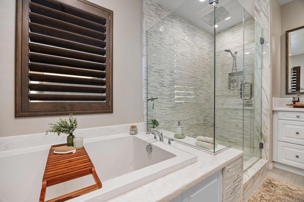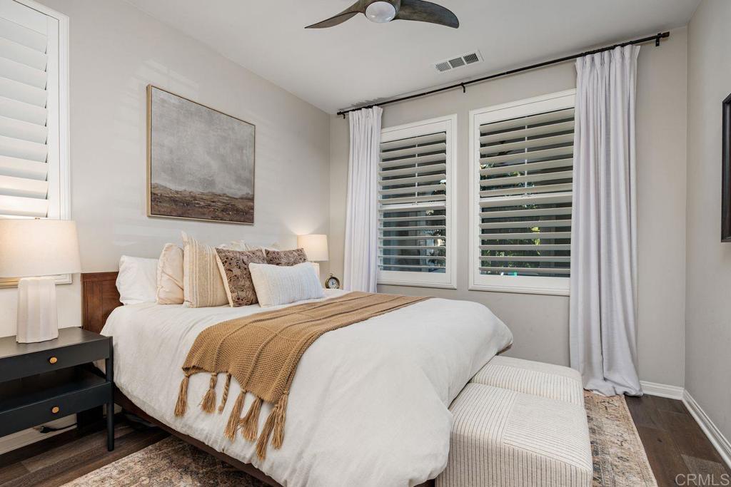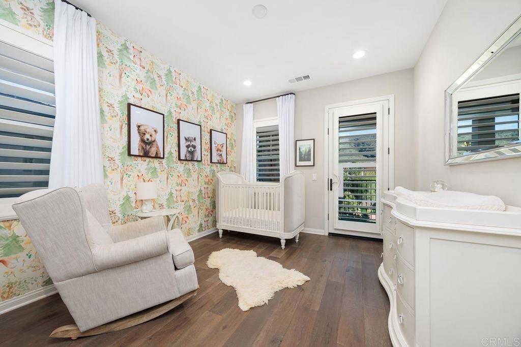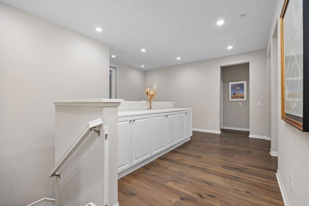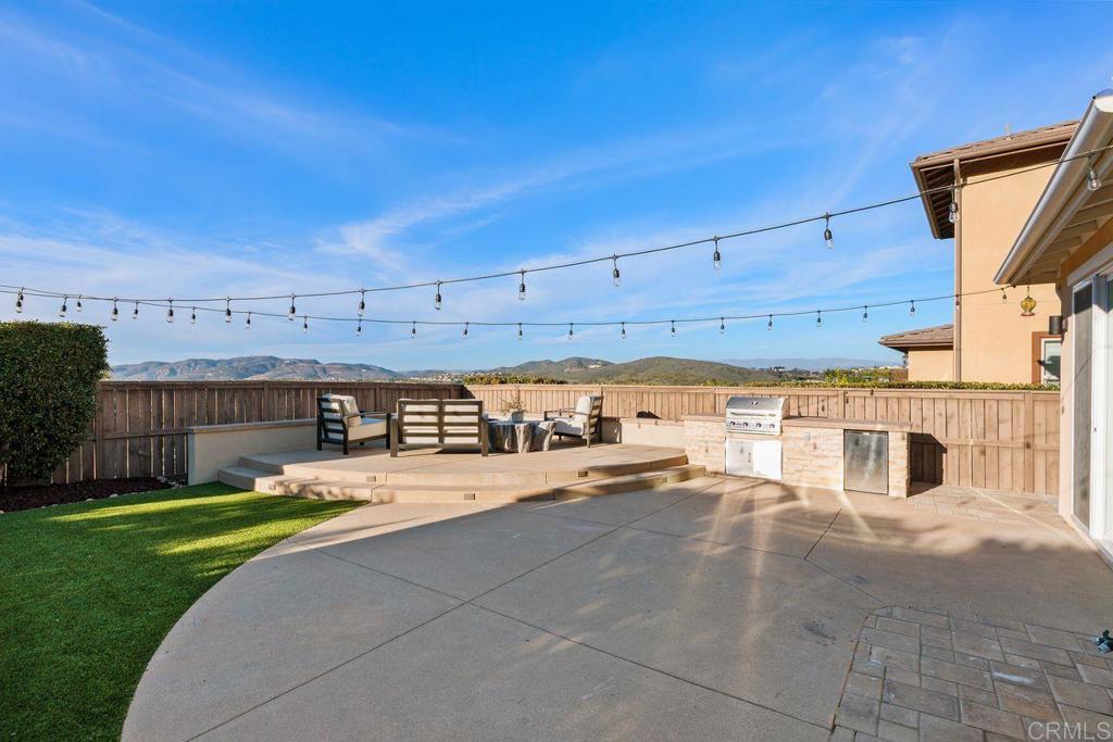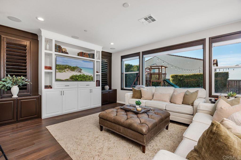 Welcome to your over 3,000 square foot home in the prestigious Heritage Bluffs, featuring five bedrooms and three bathrooms. Offering beautiful views of the surrounding hills with plenty of natural light. Enter to beautiful woodwork in the foyer. This unique property has an added fifth bedroom upstairs and expanded downstairs providing additional living space. Full bedroom and bathroom downstairs. The home features an open layout, a spacious kitchen with a large island and bar seating open to two family rooms. Beautiful hardwood flooring throughout the downstairs and upstairs. This is in immaculate condition with numerous upgrades, including a fully paid off solar system, with a Tesla home battery and 220v car charger. Save money with a newer HVAC unit. Wake up to peaceful mountain views from your Master bedroom which also features a large walk-in closet. Large upstairs laundry room. The 2 car garage sports plenty of custom built in storage cabinets. The open backyard provides a quiet and tranquil outdoor space great for playtime and entertaining. This property is ideally located in the top rated Poway Unified school district and next to Oak Valley Middle School. Nearby, you'll find easy access to trails, shopping, and dining, allowing for a convenient and exceptional California lifestyle. This home is perfect for those seeking a spacious, well-maintained residence in a desirable location.