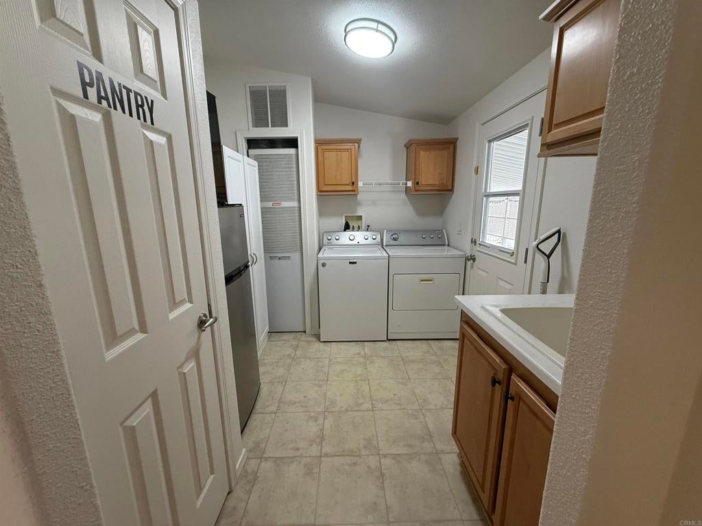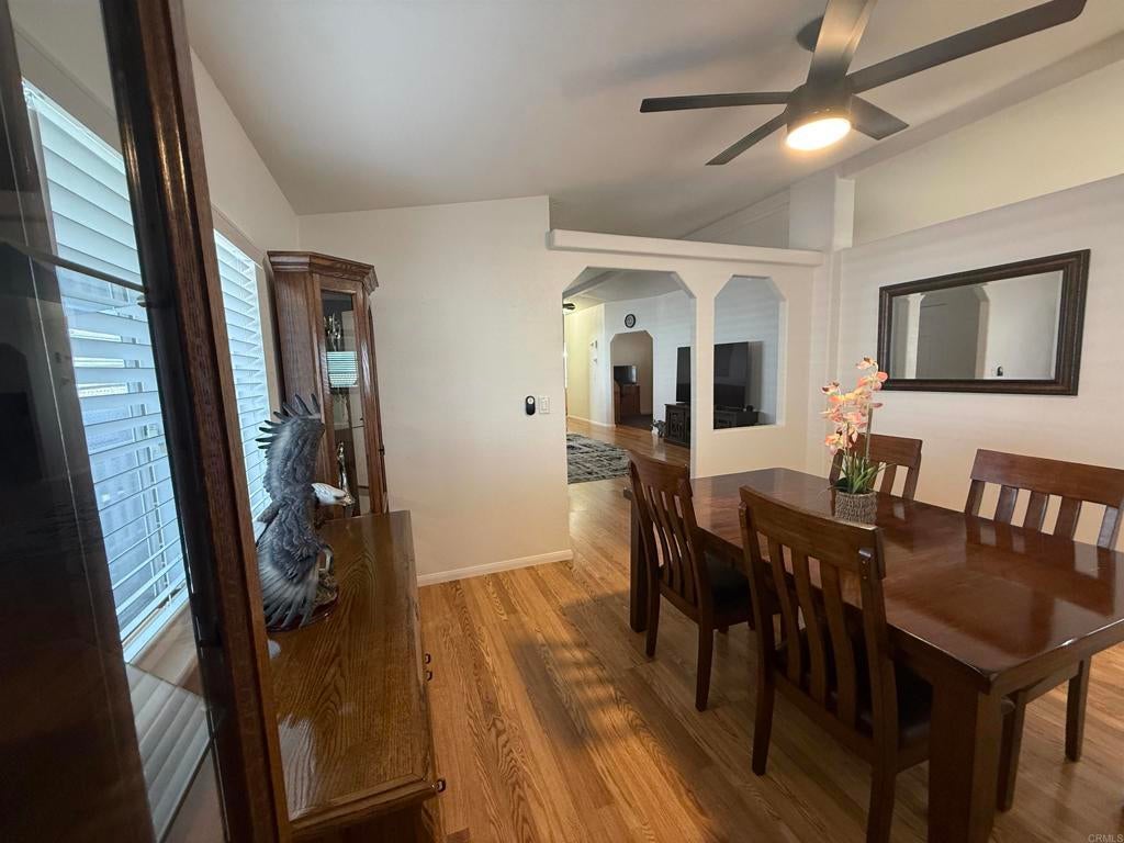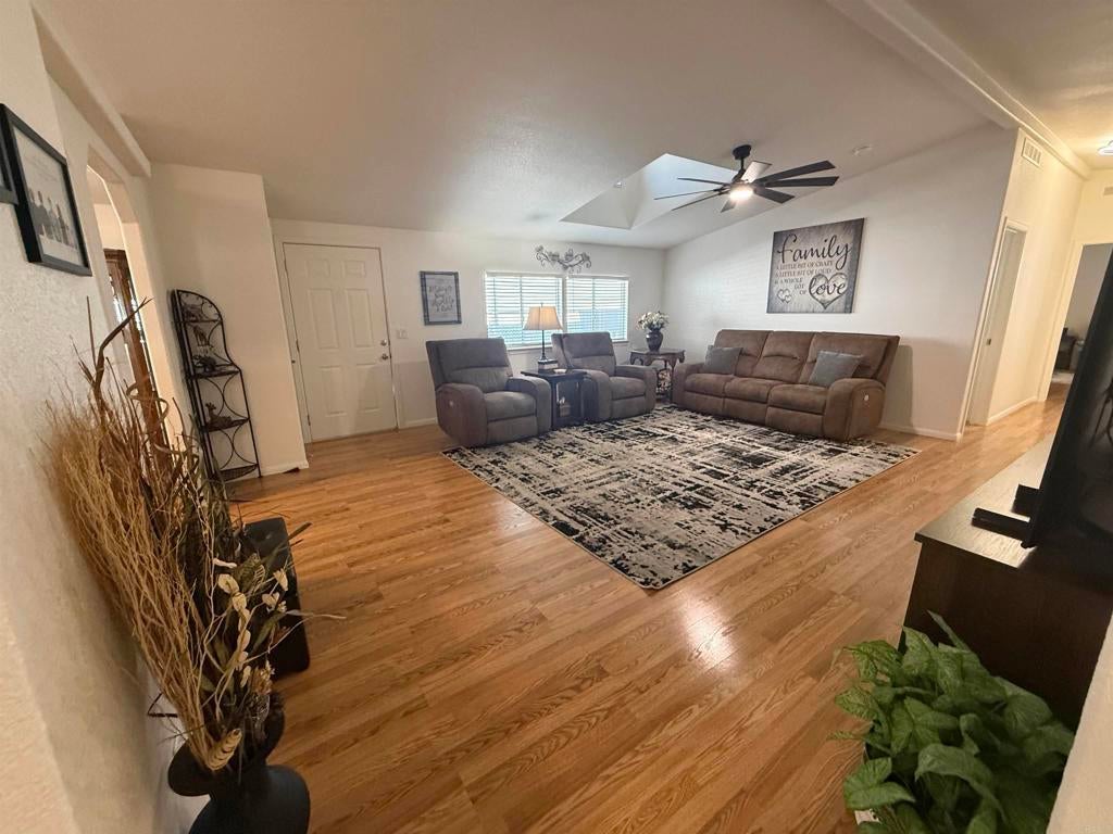 This move-in-ready home is now available in the sought-after 55+ Madrid Manor community. Notably, this property includes the land, so there is no land lease or rent required. The home features vaulted ceilings with skylights for natural light, laminate flooring, and ceiling fans in every room. The layout includes a wide hallway leading to the bedrooms and a guest bath, plus an optional room perfect for a den, office, or craft space. The large kitchen offers a center island for extra workspace, while the primary suite includes a walk-in closet and a walk-in shower. Outside, an extra-long carport provides ample space for outdoor entertaining. The unit is conveniently located near the clubhouse and guest parking, with easy access to I-15 and shopping. Madrid Manor amenities include: Large clubhouse with a kitchen and dining area (125-person capacity) Pool, spa, and fitness facilities (exercise and aerobics rooms) Card room, library, and pool room with three tables Tennis and pickleball courts, mini-golf, and shuffleboard Dance studio and additional meeting rooms Landscaped hillside with walking paths