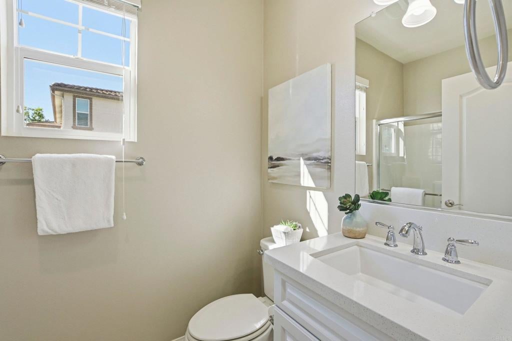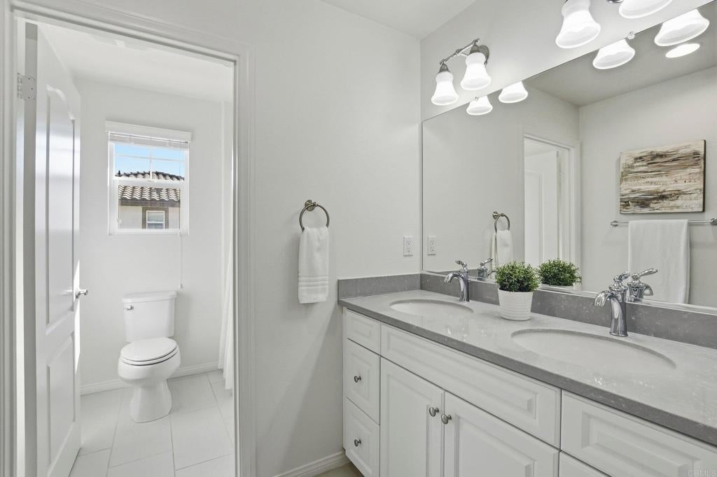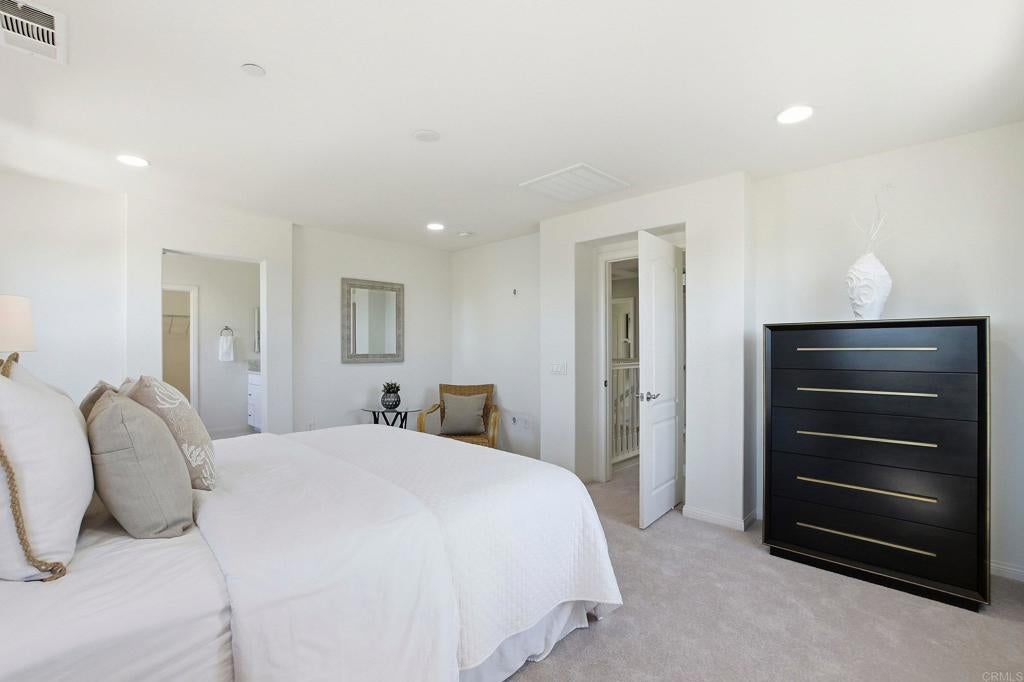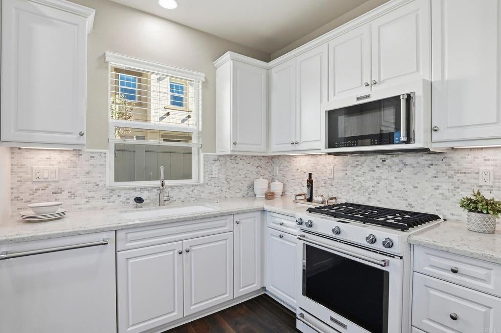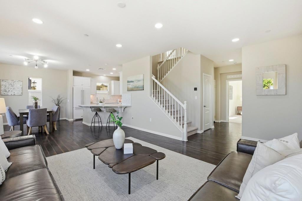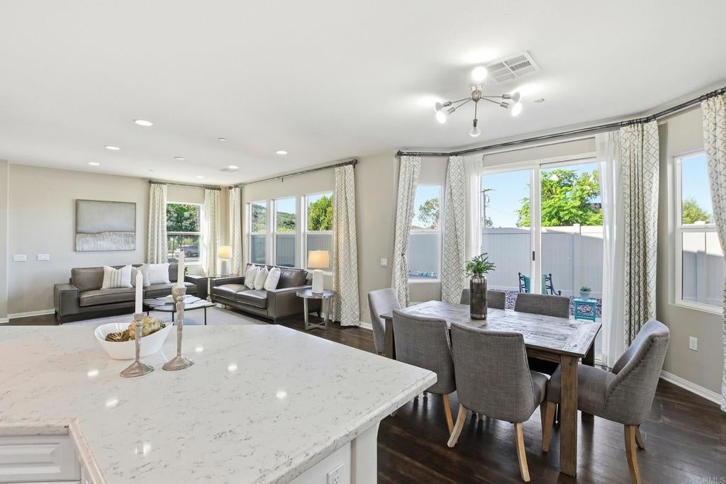 Welcome home to the perfect blend of modern luxury and design in Lakeside's highly desirable Ridgeline community.  This 4-bedroom, 3 bath home with a spacious loft sits on a premium lot and offers the largest floor plan in the neighborhood including a downstairs bedroom.  Featuring with high-end elements, including wide luxury vinyl plank flooring, a gourmet kitchen with Quartzite countertops, tile backsplash and dining island with new carpet and paint throughout the home.  The open layout is perfect for everyday living and entertaining with plenty of room and storage of all your belongings including cabinets and racks in the garage.  Relax and unwind in the resort like primary suite with a walk-in shower, soaking tub, dual sinks and walk in closet.  Enjoy energy efficiency with 20 owned solar panels and a Tesla Powerwall, plus modern comforts including a tankless water heater, whole-house water softener and filtration system. Conveniently located near the community park and guest parking, this home blends space, sustainability, and an ideal location with close proximity to dining, shopping, entertainment, schools, freeway access and so much more. Come enjoy everything that 13310 Cuyamaca Vista has to offer!