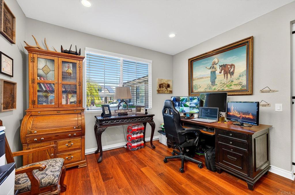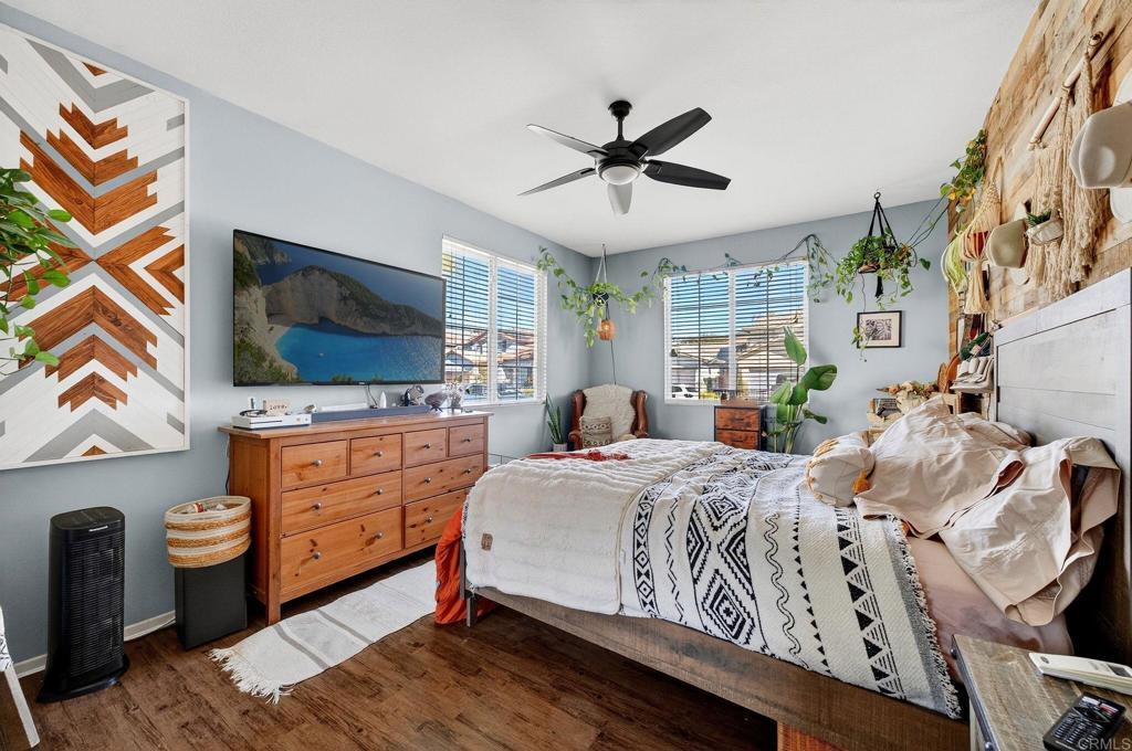 Beautifully upgraded cul-de-sac home in the highly sought-after Temecula Valley School District. This move-in ready property blends designer touches, energy efficiency, and outdoor living and relaxation at its finest. Interior features include freshly painted walls, professionally refurbished oak cabinetry with upgraded hardware, a fully remodeled kitchen and upgraded bathrooms, brand-new stainless steel matching appliances, new toilets and faucets, new light fixtures, and a new HVAC system. Reclaimed wood kitchen island, custom accent walls (reclaimed wood + faux brick), upgraded natural stone gas fireplace with concrete hearth and wood mantle, and illuminated night-light outlets throughout add warmth and character. The front office features a barn door and farmhouse corrugated metal accents — ideal for a home office you will want to bring clients to. This house has major potential to fit your families needs envisioning courtyard-style French doors and space for a future ¼ bath addition for front room/guest exclusive use, makes it perfect for multigenerational living or private guest access. Backyard retreat includes stamped concrete, covered patio with natural stone columns and ceiling fans, Malibu lighting highlighting mature palm trees, in-ground gas fire pit with seating, soothing fountains, a Hot Springs spa with Frog system, mature fruit trees (Granny Smith apple, Santa Rosa plum, navel orange), drip irrigation, raised garden beds, river rock planters, privacy block wall, and space for a future pool. Additional upgrades: Solar through SunRun for energy savings, TexCote CoolWall exterior coating (fire-rated, mold/mildew resistant, reflective heat technology), ornate iron security door, epoxy finish garage floors with Gladiator overhead storage, 220 outdoor power, and freshly seeded lawn. This single-story home is a rare find — fully turnkey, extensively upgraded, and thoughtfully designed with unique craftsmanship throughout. Offering generous square footage and flexibility for future expansion, it delivers both immediate comfort and long-term potential. Opportunities like this don’t come around often. Schedule an appt to view today!