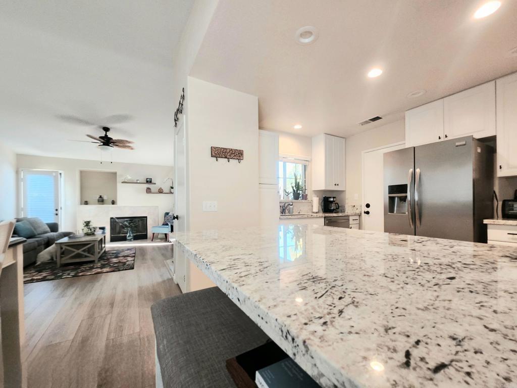 Step inside and feel the calm set in. Natural light, gentle afternoon breezes, and an open layout create a welcoming home designed for relaxed, everyday living. High ceilings, updated wood-look vinyl flooring, and a cozy fireplace give the living and dining spaces an airy yet comfortable feel, complemented by neutral finishes throughout. The kitchen blends style and function with white cabinetry, granite countertops, modern counters and sink, and newer fixtures and appliances, including a new dishwasher—ideal for casual mornings or simple gatherings. The layout flows naturally, offering both connection and comfort. The primary suite is a peaceful place to unwind, featuring vaulted ceilings, generous closet space, south- and west-facing windows overlooking the garden, and an updated en-suite bath with a custom stone tile walk-in shower. The second bedroom is well-sized and filled with natural light, featuring modern glass doors, built-in closet storage, and west-facing windows along with a sliding glass door providing direct access to the fully fenced backyard. Mature bushes and trees create a private, serene garden setting, ideal for entertaining or quiet relaxation. Additional backyard access is available through exterior doors from the living room, garage, and side gate. Recent property updates include designer paint throughout, recessed lighting, updated fixtures, newer washer and dryer, a recent roof tune-up with a four-year roof certification included, and an HVAC system and condenser unit upgraded within the last five years, offering added peace of mind. Located on a quiet cul-de-sac within The Colony at California Oaks, an established 55+ community with controlled entry for residents and guests, homeowners enjoy a sense of privacy and a thoughtfully designed lifestyle centered around the community clubhouse. Amenities include social clubs, a fitness center, pool and spas, sport courts and programs, salon, billiards room, library, card rooms, community theater, planned day trips, and a full-time activities director. An executive-length golf course weaves throughout the community, offering scenic views of greenbelts, fairways, and duck ponds, while HOA-maintained common areas support an easy, low-maintenance lifestyle. This move-in ready home offers a comfortable, connected way of living, with the flexibility to be as active—or as relaxed—as you choose.