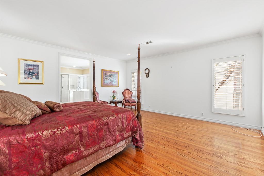 Located in the prestigious Fairway Heights of Rancho Bernardo, this custom grand estate offers sweeping west-facing golf course views and a timeless blend of luxury, scale, and craftsmanship. A rose-lined approach and manicured gardens accented by classic blue earthen pots lead to a private courtyard with decorative fountain, creating a serene arrival. Grand custom entry doors open to a dramatic two-story foyer with soaring ceilings, dual staircases, and elegant banisters. Rich custom wood flooring flows throughout the home, setting a tone of warmth and sophistication. The main level is thoughtfully designed for both entertaining and everyday living. Formal sitting and dining rooms are ideal for gatherings, while the family room features custom built-ins and a fireplace. A wet bar and casual dining area seamlessly connect the living spaces. The gourmet kitchen is anchored by a large island topped with rare blue granite imported from Brazil, complemented by matching perimeter counters, French Country cabinetry, custom chandeliers, crown molding, and designer lighting. Premium GE Monogram appliances include a refrigerator, double ovens, and an all-gas cooktop, with both main and butler’s pantries providing exceptional storage and functionality. The main level also includes a full bedroom and bath, a spacious laundry room with extensive cabinetry, and direct access to the epoxy-finished three-car garage with built-in storage, attic ladder, and tankless water heater. Swarovski chandeliers grace the formal dining room and main hall, while oversized windows and recessed lighting fill the home with natural light. Upstairs, the primary suite is a private retreat featuring a lounge with wet bar and fireplace, plus flexible space ideal for a sitting area, gym, or nursery. The spa-inspired bath offers dual vanities, separate his-and-her showers, a walk-in hydrotherapy tub, and an oversized custom walk-in closet. Additional upstairs spaces include a private office or optional bedroom and two generously sized secondary bedrooms, each with walk-in closets, full baths, and panoramic views. The backyard opens directly to the golf course fairway and offers a peaceful extension of the home. Mature fruit trees—including fig, pomegranate, peach, orange, lemon, and satsuma—are complemented by roses, plumeria, and lush gardens. A covered patio provides shade and an inviting setting for evening gatherings around the fire pit. Conveniently located near shopping, dining, parks, walking trails, and award-winning golf courses. Rancho Bernardo Middle and High Schools are within walking distance, along with playgrounds, sports fields, tennis courts, picnic areas, and a heated junior Olympic-size pool. Membership to the exclusive Bernardo Heights Club includes access to tennis courts, pools, a gym, basketball court, pickleball courts, and more. Experience the perfect lifestyle in Fairway Pointe, where luxury meets comfort. A rare opportunity to own a truly custom estate in Bernardo Heights—where luxury, efficiency, and enduring design come together.