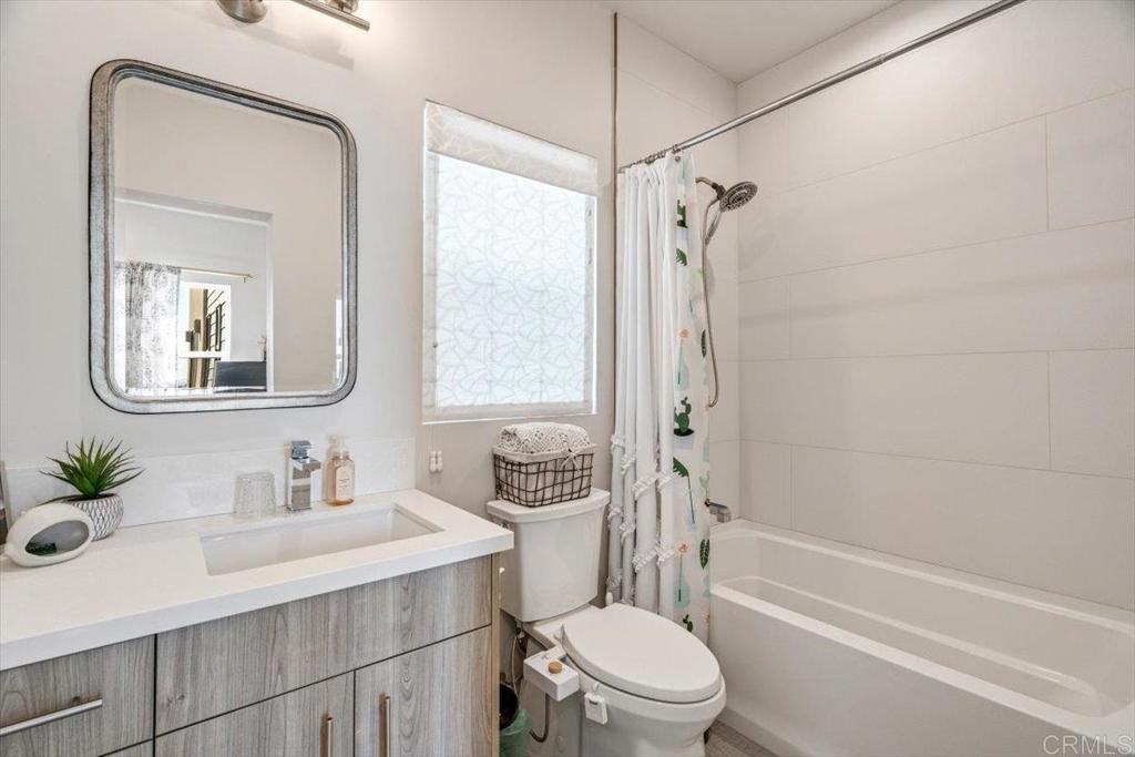 No HOA, a stunning rooftop deck with skyline and water views, and rare 2-car parking (private garage + tandem) set this sophisticated detached contemporary condo apart in the heart of the city. Offering 2 bedrooms, 2.5 baths, and 1,438 sq ft, the home is thoughtfully designed across multiple levels to maximize privacy, functionality, and everyday livability. The open-concept main level seamlessly connects the living, dining, and chef’s kitchen—featuring sleek cabinetry, quality countertops, and a spacious center island—while a stylish powder room keeps guest spaces separate. Upstairs, dual en-suite bedrooms each offer a private bath, ideal for roommates, guests, or a work-from-home setup, and the multi-level layout creates distinct living zones with a single-family feel. Additional highlights include in-unit laundry, a private patio for indoor-outdoor living, and direct-access garage parking—an increasingly rare find in this location. The expansive rooftop deck crowns the home with sweeping downtown skyline and water views, perfect for entertaining or relaxing year-round. Ideally located just minutes from Downtown San Diego, top dining, shopping, and major freeways, this home blends modern design, comfort, and convenience—all with the added benefit of no HOA fees.