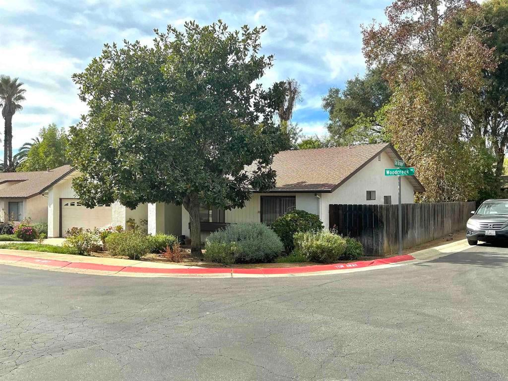 BEAUTIFUL maintained Single-level HOME in the desirable community of WOODCREEK. Newer outdoor paint, A/C and Kitchen Flooring. Open floor plan, vaulted ceiling in living room/dining room combo. Sliding glass doors lead to Relaxation in your own private yard with sounds of the creek. This corner lot home is fully fenced. The community is close to everything and has a Park, Tennis Courts and Hiking trails. The living room flows seamlessly from the eating area to the Cozy Brick Fireplace. The Primary Room features ceiling fan, ample closet space and an en-suite bathroom with shower stall and vanity. The secondary bedrooms are a generous size with good size closets and share the full hall bathroom. Close to schools, Senior Center, Grocery Stores, Restaurants and the annual Avocado Festival! Perfect neighborhood for the Family or Rental investment. Seller to select all services. Enjoy the Beautiful Fallbrook Weather. Welcome Home!