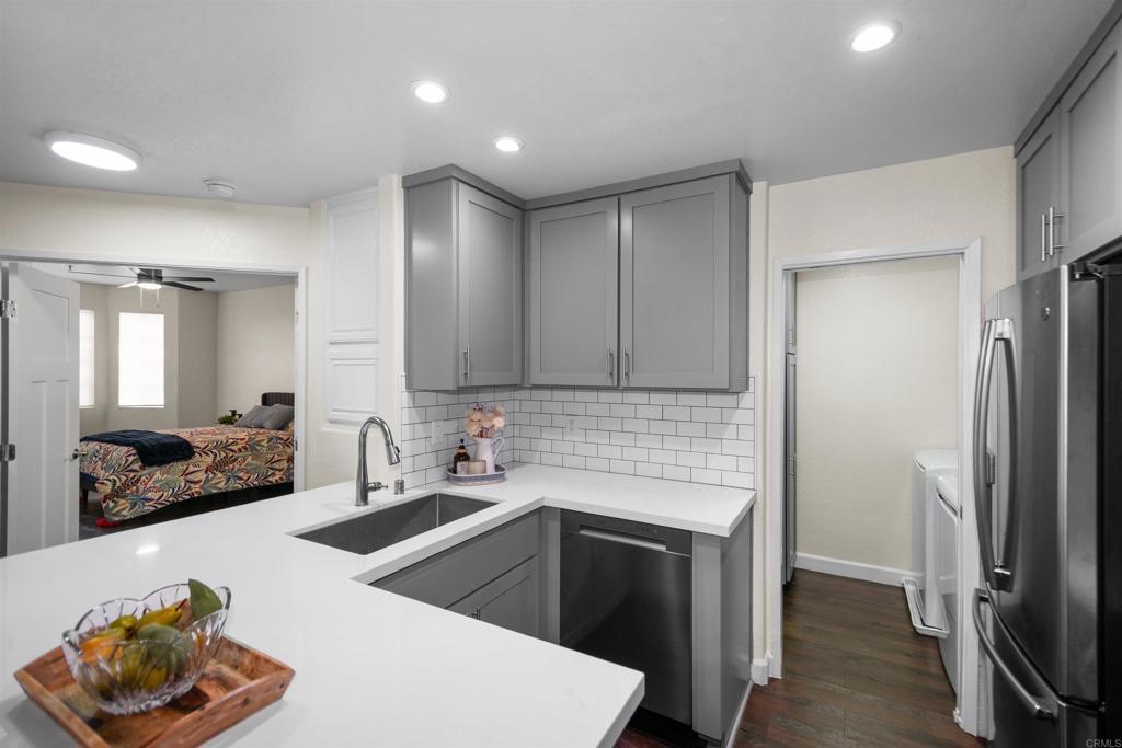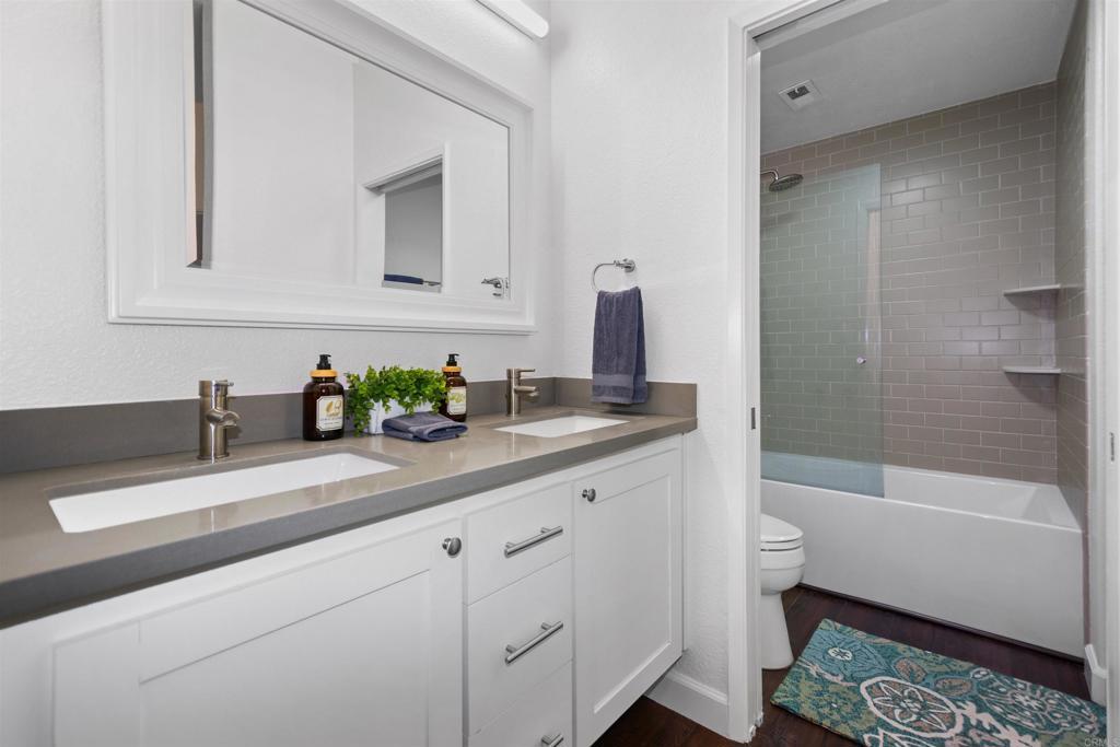 Welcome to this beautifully updated 3-bedroom, 2-full-bath Park Place La Jolla condo ideally located just over a mile from the University of California, San Diego (UCSD). Perfect for homeowners and investors alike, this home offers the ideal blend of comfort, convenience, and coastal lifestyle. Situated just minutes from the vibrant shopping and dining hub of Westfield UTC, you'll enjoy walking distance to premier retail, restaurants, 5 different grocery stores, and other everyday conveniences. The property is also a short drive to the beautiful beaches of La Jolla and the charming boutiques, cafés, and galleries of La Jolla Village. Inside, the home has been recently remodeled with modern finishes throughout. Gorgeous hardwood plank flooring flows seamlessly through the living spaces, creating a warm and inviting atmosphere. The open floor plan makes daily living and entertaining seamless and easy. The upgraded kitchen features stylish cabinets, updated countertops, and modern hardware, newer appliances and brand new dishwasher offering both function and contemporary appeal. The view and access to the small patio and outdoors from the living space give a bright, open feel. The hardwood flooring seamlessly transitions into the expansive master bedroom suite, which includes 3 large windows, 2 oversized closets, a double sink, a modern bathtub, and a shower. The 2 other roomy bedrooms have large closets and windows and one bedroom has a door access to the back patio. The second full bathroom has been tastefully updated, featuring a brand new vanity and faucet which adds a clean and polished look. The entire interior has been freshly painted, complemented by new hardware throughout, and cleaned carpets resulting in a crisp, move-in-ready feel. Located ideally as a corner unit of the property, there is only one adjoining wall. With lots of windows, views to lush landscape, and easy access to the shared garage parking for bringing home items from your car, as well as the sidewalk for daily walks or going out shopping, to restaurants, or classes at the UCSD East Campus, you will love how convenient daily living is. Whether you're looking for a primary residence, a second home near UCSD, or an investment opportunity in one of San Diego’s most desirable coastal communities, this La Jolla condo offers location, lifestyle, and modern upgrades all in one. Some photos have been virtually staged.