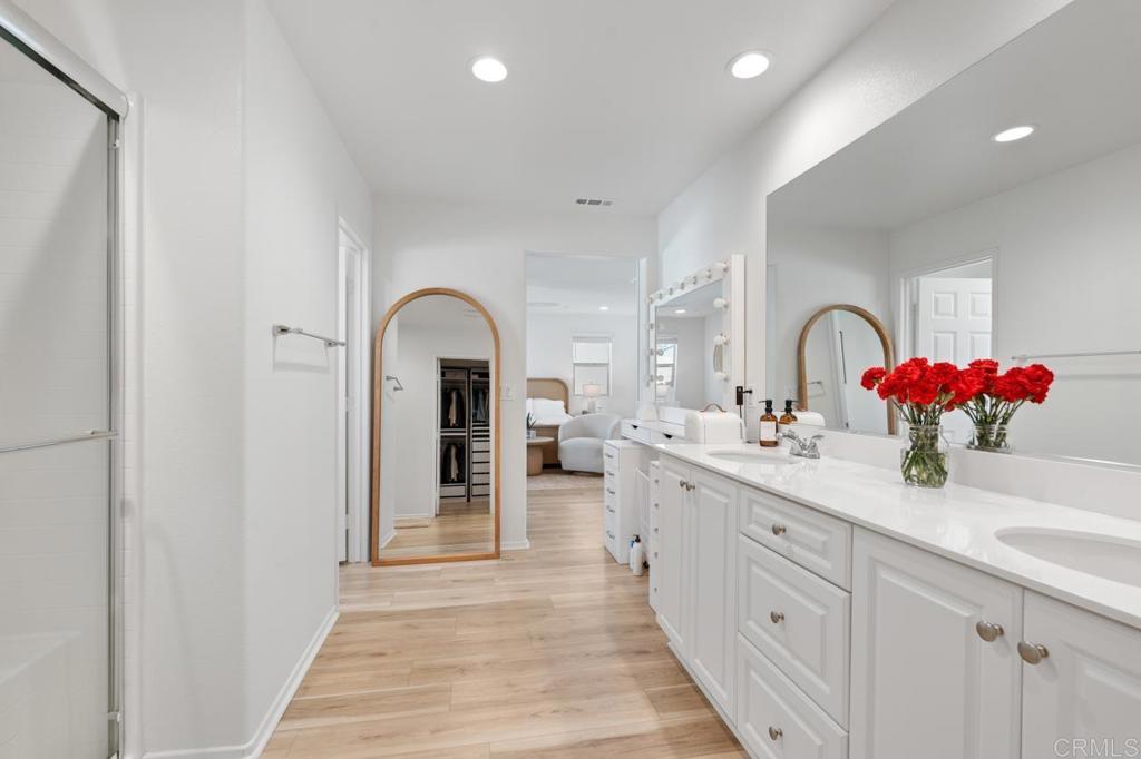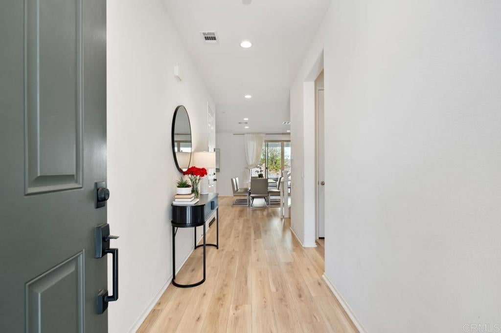 Welcome to this modern 4-bedroom, 3-bath home, currently the best-priced home in the highly sought-after Park Circle community of Valley Center. Built in 2022, this thoughtfully designed 2,665 sq ft residence features an open-concept layout with a spacious kitchen showcasing quartz countertops and stainless-steel appliances that seamlessly flow into the living and dining areas—ideal for everyday living and gatherings. The primary suite offers a relaxing retreat with dual sinks and a fully built-out walk-in closet. The upstairs loft provides flexible space perfect for a playroom, homework area, media room, or home office. With over $100,000 in upgrades, the home includes luxury flooring, custom window coverings, overhead garage storage, paid solar panels, a Tesla charger, and a Lorex home camera system that may be requested to convey—providing both comfort and peace of mind. Park Circle offers resort-style amenities, including multiple pools, a fitness center, clubhouse, playgrounds, dog parks, sports courts, and over 6 miles of scenic walking trails, along with regular community events. Enjoy close proximity to local favorites such as Portino’s Restaurant, Cado Farm to Table Café, the Hilltop Winery, Lake Wohlford, Dixon Lake, Bates Nut Farm, and Native Oaks Golf Club, with convenient access to schools and shopping. This move-in-ready home offers exceptional value in one of Valley Center’s most desirable master-planned communities.