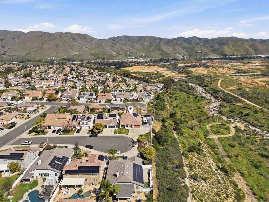 Located at the very top of Horsethief Canyon Ranch Community this home is the one you have been waiting for!! Single level four bedroom, two bath has loads of natural light and forever views. Primary suite is on its own wing of the house with privacy and a beautiful en-suite bath with garden tub and large closet. Bring your toys! Large gated side yard space with full hook-ups can accommodate your RV, trailer, off-road vehicles or boat. High ceilings with crown molding, beautiful designer paint throughout, open floorplan with fabulous entertaining space inside and out. Large lot on a cul-de-sac features fire pit and charming covered pergola and gated dog run. Owned solar system with 18 panels. Community features a K-8 school, dog park, sports fields, tennis courts, beach volleyball, clubhouse, fitness center, two Olympic-size pools, and several neighborhood parks. Bordering Lake Elsinore and overlooking the Cleveland National Forest, this fabulous location is perfect for outdoor enthusiasts with hiking trails, watersports, and wine tasting in Temecula Valley.