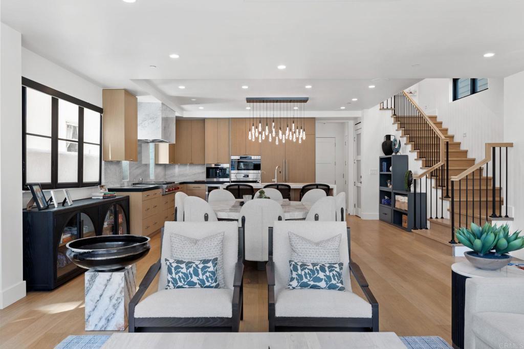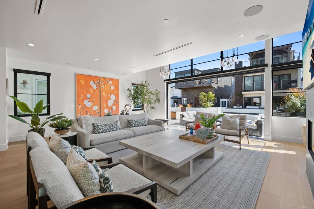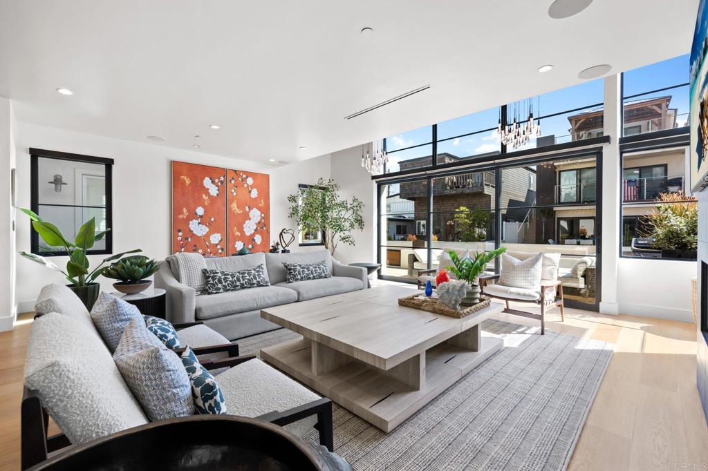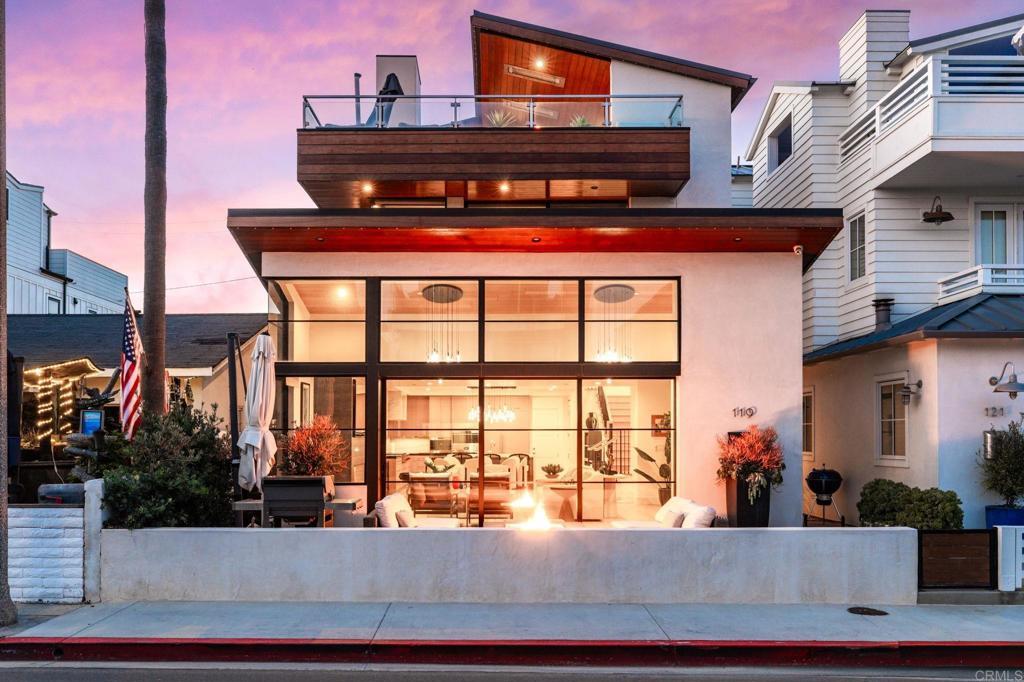 Experience the pinnacle of coastal living in this exceptional three-story residence, just steps from the beach and thoughtfully designed for elevated seaside living. This stunning home features a bright open floor plan, soaring 9-foot ceilings, and rich hardwood floors throughout, seamlessly blending luxury, comfort, and modern design. Offering three spacious bedrooms and five beautifully appointed bathrooms, the layout provides both privacy and versatility, including a bonus room on the top floor—ideal for a media room, office, or additional entertaining space. An in-home elevator provides effortless access to all levels. The gourmet chef’s kitchen is a true showpiece, equipped with top-of-the-line appliances including Wolf double ovens with steamer, a Wolf 6-burner range, built-in Wolf espresso maker, Sub-Zero refrigerator, Miele dishwasher, and a built-in wine refrigerator. Elegant Bianco Cielo natural stone countertops complete the space, perfect for both everyday living and entertaining. Outdoor living is seamless with two expansive rooftop decks, where ocean views, city lights, and Newport Center create a stunning backdrop. The rear rooftop deck features a private Jacuzzi—an ideal setting to relax, entertain, and enjoy coastal sunsets. A welcoming front patio further enhances the home’s indoor-outdoor lifestyle. Additional luxury features include owned solar panels, an exterior lighting system, surround sound speakers, integrated lighting system, video surveillance and a tankless hot water heater with an integrated water filtration system, and a spacious two-car garage with storage plus a rare additional carport space. Builder square footage shows 3156.