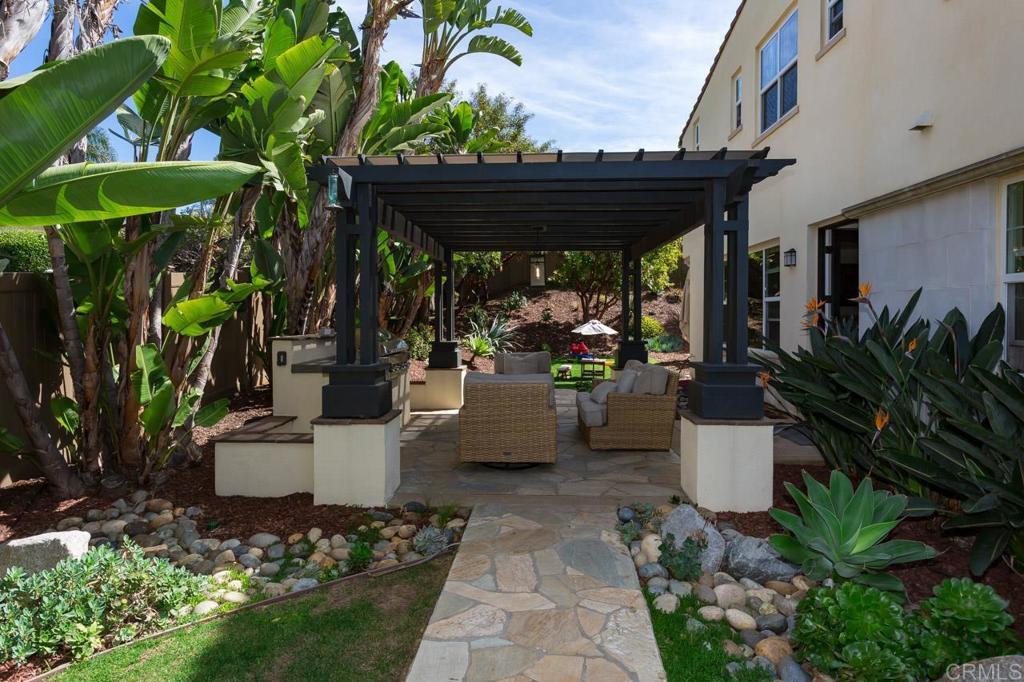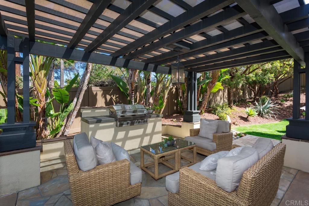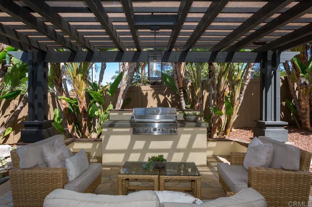 Situated on a premier cul-de-sac lot in coastal Encinitas, this exceptional former Warmington Homes showcase model offers luxury, space, and privacy on an oversized 12,233-sq-ft lot. This turnkey 5-bedroom, 5-bath residence blends elegant design with modern comfort — ideal for both everyday living and entertaining. A custom 8-foot front door opens to a dramatic two-story foyer, where wide-plank oak flooring flows throughout the main living areas. The light-filled great room features soaring ceilings, a striking west-facing wall of windows, and French doors that open to sun-drenched outdoor spaces. Formal living and dining areas, along with a built-in bar with dual beverage refrigerators, create the perfect setting for gatherings large or small. The chef’s kitchen is a true centerpiece, equipped with premium stainless-steel appliances, a 6-burner range with griddle, double convection ovens, a double-wide refrigerator, large farmhouse sink with purified water, walk-in pantry, and stunning Taj Mahal leathered quartzite countertops — all centered around an expansive island and open to the inviting family room with fireplace. A main-level bedroom with ensuite bath provides ideal accommodations for guests, extended family, or live-in support. Upstairs, the luxurious primary suite opens through French doors to a private ocean-view balcony — perfect for morning coffee and year-round sunsets. The spa-inspired bath features a soaking tub, oversized shower with bench, dual vanities with Hansgrohe fixtures, marble flooring, polished quartz counters, and an expansive walk-in closet. An additional ensuite bedroom with private balcony, two secondary bedrooms connected by an upgraded Jack-and-Jill bath, and a spacious light-filled bonus loft offer flexible space for a home office, media room, playroom, or retreat. The upstairs laundry room adds everyday convenience. The backyard is a rare coastal find — large, private, and beautifully landscaped. Enjoy an expansive lawn, raised garden beds, multiple patio areas, and a custom covered outdoor built-in BBQ and fireplace, creating distinct spaces for relaxation and entertaining. Additional highlights include, finished 3-car garage with epoxy floors, extensive built-in storage cabinets, overhead storage racks, owned whole-house Culligan water softener/conditioner, owned solar system. Ideally located near top-rated schools, parks, shopping, dining, beaches, historic Highway 101 and the El Camino Real corridor, with convenient freeway access.