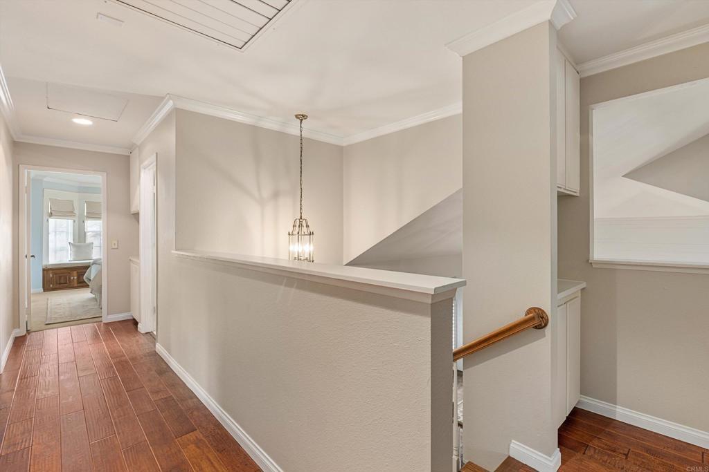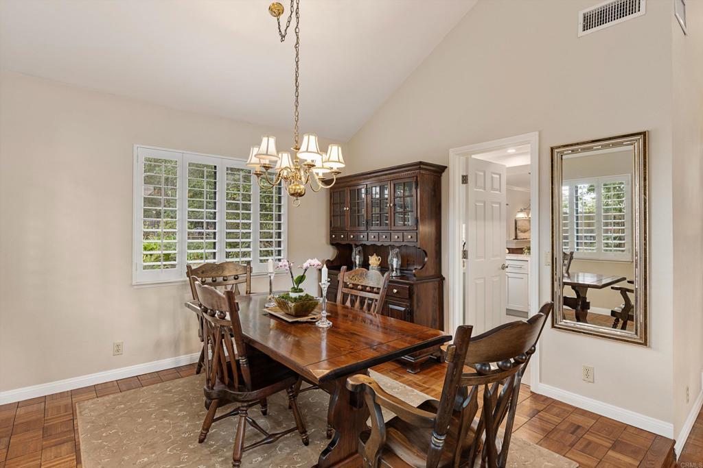 Welcome to this meticulously maintained, beautifully appointed home in a highly desired Citracado neighborhood of Southwest Escondido. Set on a private, serene park-like, .28 acre lot, the interior of this 4 bdrm/3ba 2363sf home draws instant attention with the eye-catching luxury of its impressive down stairs living areas. Beautiful parquet, genuine wood, flooring adorns the spacious sun-splashed living room, compliments of a large, beautiful bay window sporting high-end wooden shutters. A cozy fireplace embraces the generous, comfortable sitting area, adding warmth to those chilly, after-work evenings. Adjacently located is a welcoming dining area with easy access to the recently remodeled kitchen, which boasts quartz countertops, smartly matching backsplash, new appliances, attractive tile flooring, and a well-placed kitchenette area granting easy access to the family room/den; this haven also includes a second fireplace offering another escape to enjoy a warm, cozy fire on those cooler evenings, or an ideal gathering spot for those special social occasions. Glass sliding doors allow for easy access to the outdoor patio and dining areas and further out, on to the "vacationland" back yard - the entire downstairs living areas share a unified theme of impressive trim crown molding, high-end wooden shutters and parquet wood flooring. Additional features on this first floor are a private half bath/powder room, a spacious utility room, and access to the garage, facilitating transport of groceries to the kitchen! The upper level boasts four bedrooms, highlighted by the primary bedroom located privately at one end of the hall/walkway - it is richly accented with a luxurious, recently renovated primary bathroom showing off its sparkling new quartz countertop accompanied by a roomy, sleek, color-coordinated shower! Another special attraction is the main guest bedroom with its double-veiled window dressing allowing filtered levels of light. One of the bedrooms is presently set up as an office with a birds eye view of the flora and fauna-filled back yard/pool area. The welcoming front yard curb appeal teases a walk into the back yard, opening up into an oasis of tranquility and peace - and much summertime fun! Well chosen greenery surrounds the back yard pool and spa, a choice of sitting areas, and the patio/outdoor dining area! An added feature of value includes a leased solar system ( installed 2 years ago) with a back up battery. This home offers all the amenities needed to enjoy the best of the envied SoCal indoor/outdoor lifestyle. A quick check of the map reveals that this location is ideal to freeway access, major tourist attractions, schools, shopping, the Lake Hodges preserve and local parks! Don't delay, make this your new home today!