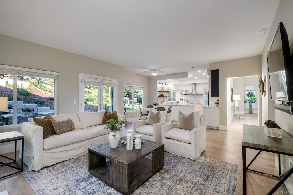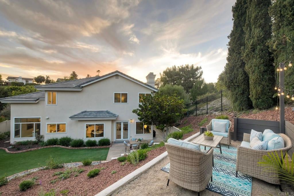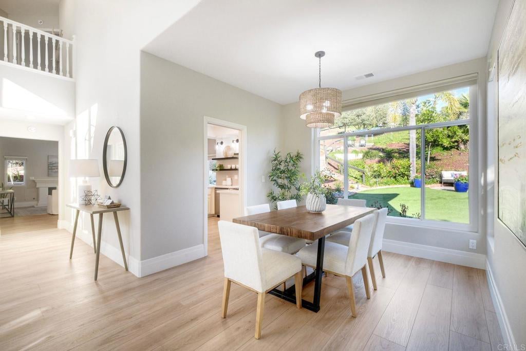 Welcome to this beautifully updated home in the highly sought-after Fire Mountain neighborhood of South Oceanside, featuring a spacious, open floor plan, a private, expansive, park-like lot with a peek-a-boo ocean view from the top patio and plenty of room for a pool, ADU, or future expansion. Enclosed with a new fence for exceptional privacy, the gated front courtyard creates a peaceful welcome. Inside, soaring floor-to-ceiling windows flood the dramatic two-story entry with natural light, leading into the living and dining areas—perfect for entertaining. The stylish kitchen features white cabinetry, quartz countertops, a five-burner gas cooktop, brand-new oven and microwave, sleek wine refrigerator, and a convenient pantry with pull-out shelves. It opens seamlessly to the breakfast nook and inviting family room with a cozy stone fireplace. The main level also includes a newly remodeled half bath, a laundry room with ample storage, and a rare, oversized 3-car garage with abundant overhead storage racks. Upstairs, the expansive primary suite offers double-door entry, vaulted ceilings, a second fireplace, and a generous walk-in closet with built-ins. The spa-inspired ensuite bath features dual vanities, a soaking tub, and a separate shower. Two additional spacious bedrooms and a beautifully updated guest bath with dual vanities provide flexibility for family, guests, or a home office. The beautiful, private backyard is designed for both entertaining and relaxation, with low-water landscaping, easy-care turf, and multiple gathering areas perfect for hosting or enjoying quiet outdoor dining. Additional highlights include LVP flooring throughout, a three-year-old roof, new backyard fencing, dual-pane energy-efficient windows, central air conditioning, and a whole-house water filtration and softening system. Ideally located Just minutes from some of North County’s most stunning beaches, Carlsbad Village, Michelin restaurants, trendy bars, boutique shopping and Highways 5 & 78, this property offers the ultimate coastal lifestyle.