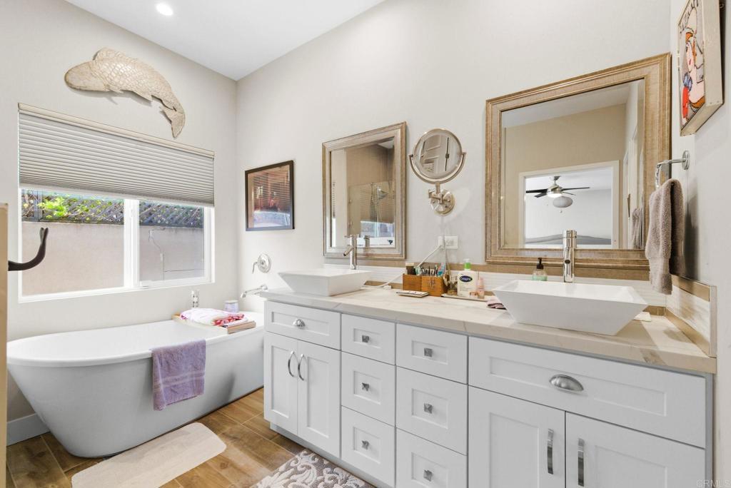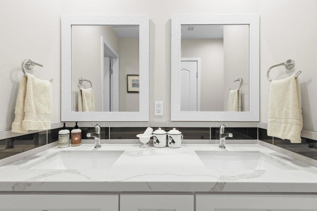 Fully reconfigured and upgraded Bay Ho residence offering modern comfort, thoughtful craftsmanship, and an exceptionally private backyard retreat, quietly tucked away on a serene cul-de-sac. Since its comprehensive 2017 renovation (including new electrical, plumbing and sewer line to the street, windows, drywall, lighting, and finishes), this home has had just one meticulous owner who has maintained it in pristine condition. Inside, you’ll find an open-concept layout with high ceilings, a gas fireplace, custom window treatments, and a beautifully appointed kitchen featuring quartz countertops, mosaic-cut tile backsplash, custom cabinetry, Electrolux oven and gas stove, Electrolux warming drawer, Electrolux refrigerator, Electrolux convection oven/microwave, Bosch dishwasher, and a large walk-in pantry. The home lives as 3 bedrooms and 2.5 bathrooms, with both full baths offering dual vanities and a serene deep soaking tub in the primary suite. A spacious, dedicated laundry room is equipped with Electrolux washer and gas dryer for everyday convenience. Major system upgrades include a tankless water heater, newer roof (from the rebuild), 200-amp electrical panel (per remodel), central air conditioning, gas heating, and an ADT security system. Thoughtful details like ceiling fans, dual-pane Low-E windows, and an efficient single-level layout make daily living comfortable and easy. The backyard is exceptionally private and designed for low-maintenance enjoyment, featuring approximately 800 sq. ft. of premium astroturf, full-yard drip and sprinkler irrigation system (front and back), a gas BBQ hook-up, and lush, professionally maintained landscaping. The space offers ample room to entertain or relax, with a separate area ideal for pets or play. All of this is set in a prime NW Clairemont/Bay Ho location with quick access to La Jolla, UTC, Mission Bay, beaches, shopping, dining, and freeways. This is not a basic “paint and carpet” flip — it’s effectively a newer build with extensive structural, mechanical, and cosmetic upgrades, lovingly cared for by one owner and ready for its next chapter.