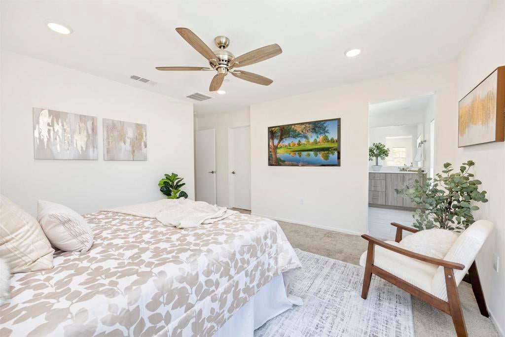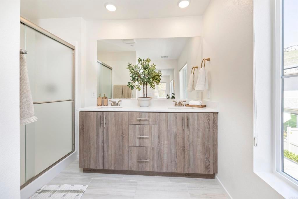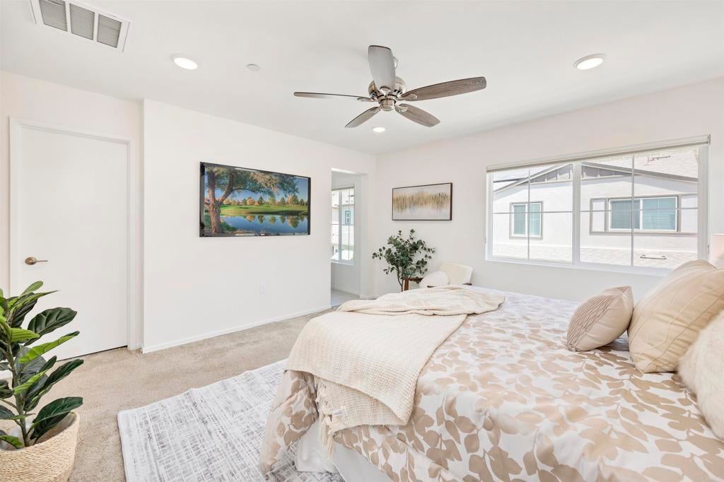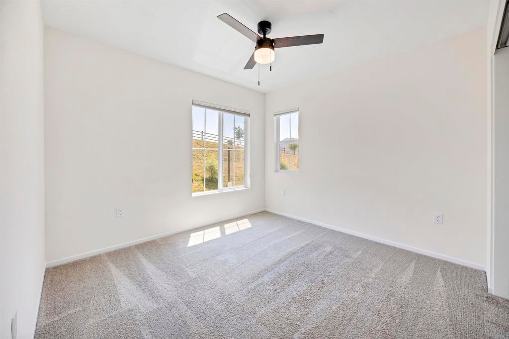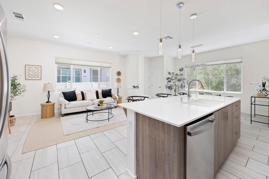 Set in the heart of Citro, Fallbrook’s premier community, this rare corner-unit blends contemporary design with a vibrant, outdoor lifestyle. This 4-bedroom, 3-bath, 1,471 sqft residence combines elegant finishes with everyday functionality. The kitchen features a large island, quartz countertops, stainless steel appliances, large pantry, water softener, and abundant storage—perfect for both casual meals and entertaining. A flexible 4th bedroom offers space for a private office or game room, while light-filled living areas open to a welcoming front porch. Additional highlights include a stackable washer/dryer, attached 2-car garage with extra storage area, and energy-efficient leased solar. Citro offers 235 acres of open space, 14+ miles of trails, a community garden, bocce ball court, clubhouse, dog park, and a resort-style pool/spa—all surrounded by scenic avocado and citrus groves.