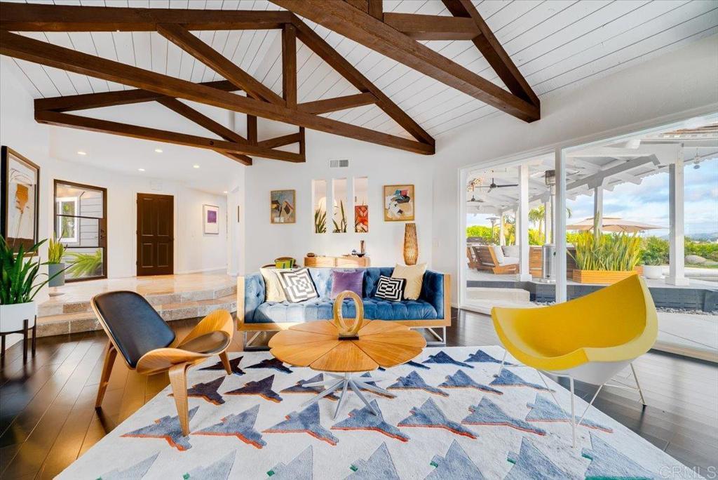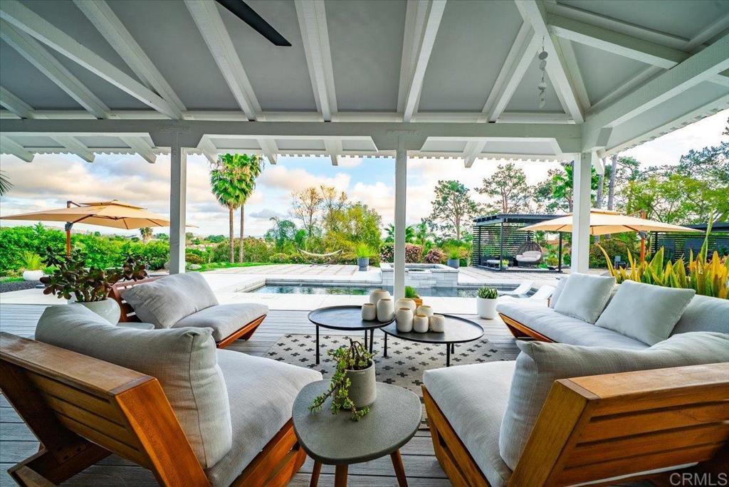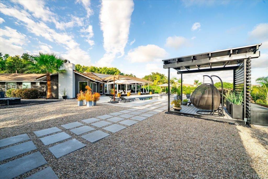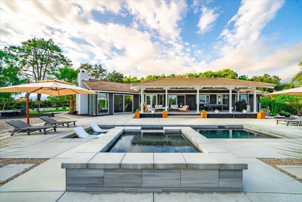 Rare opportunity in the hills of Fallbrook! This private single-level mid-century home with mountain views has been completely renovated with approximately $800K–$900K in upgrades, offering luxury living with no HOA and not located in a high fire zone. Seller’s loss is your buyer’s gain. They upgraded with plans to stay. The thoughtfully redesigned interior features premium engineered ebony hardwood flooring, new Berber wool carpet, ebony-stained solid-core doors, new windows and sliding glass doors, updated electrical, new plumbing, and dual HVAC systems. The chef’s kitchen is beautifully appointed with quartz countertops with waterfall edges, solid walnut floating shelves, Herman Miller lighting, Hansgrohe fixtures, reverse osmosis filtration, a Wolf 30” six-burner convection propane oven, Bosch refrigerator, Summit professional wine fridge, and Samsung dishwasher. The luxurious primary suite opens to a private floating deck and features a spa-inspired bathroom with Scandinavian solid walnut floating vanities, black basalt herringbone tile flooring, Toto toilet, dual Hansgrohe rain shower heads, heated defogging backlit mirrors, and designer finishes throughout. Bathrooms throughout the home include premium Hansgrohe fixtures and heated defogging mirrors. Outdoor living is equally impressive with fully re-landscaped grounds, a 12-zone irrigation system, mature pines, ficus, palms, and jacarandas, plus a heated black premium Pebble Tec pool with Baja shelf and spa. The property also features a 10x10 gazebo with electricity, 20x24 carport with electric and water, and a newly poured concrete driveway. Additional highlights include solar, a travertine entry, two wood-burning travertine tile fireplaces, an oversized two-car garage with butcher block and aluminum workbenches and wall storage, and a 10x12 detached studio currently used as a gym. The mudroom/laundry room includes sealed oiled butcher block counters and Maytag washer and dryer. A truly unique and extensively upgraded single-level Fallbrook retreat offering privacy, views, and resort-style amenities. Will not last!!!!!! Your buyers will be in awe.