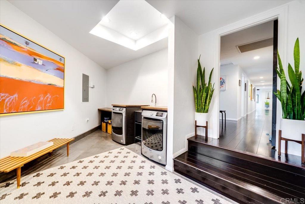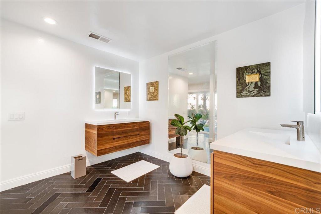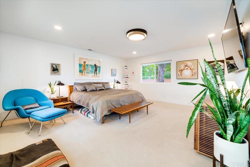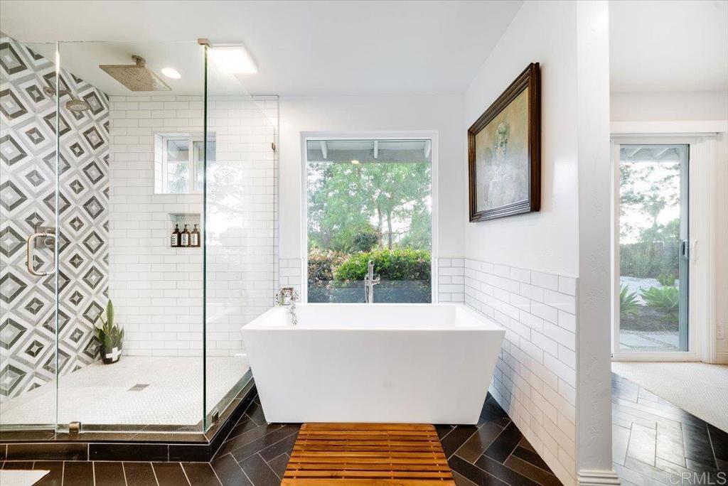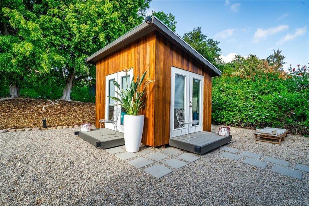 Rare opportunity in the hills of Fallbrook! This private single-level mid-century home with mountain views has been completely renovated with approximately $800K–$900K in upgrades, offering luxury living with no HOA and not located in a high fire zone. Seller’s loss is your buyer’s gain. They upgraded with plans to stay. The thoughtfully redesigned interior features premium engineered ebony hardwood flooring, new Berber wool carpet, ebony-stained solid-core doors, new windows and sliding glass doors, updated electrical, new plumbing, and dual HVAC systems. The chef’s kitchen is beautifully appointed with quartz countertops with waterfall edges, solid walnut floating shelves, Herman Miller lighting, Hansgrohe fixtures, reverse osmosis filtration, a Wolf 30” six-burner convection propane oven, Bosch refrigerator, Summit professional wine fridge, and Samsung dishwasher. The luxurious primary suite opens to a private floating deck and features a spa-inspired bathroom with Scandinavian solid walnut floating vanities, black basalt herringbone tile flooring, Toto toilet, dual Hansgrohe rain shower heads, heated defogging backlit mirrors, and designer finishes throughout. Bathrooms throughout the home include premium Hansgrohe fixtures and heated defogging mirrors. Outdoor living is equally impressive with fully re-landscaped grounds, a 12-zone irrigation system, mature pines, ficus, palms, and jacarandas, plus a heated black premium Pebble Tec pool with Baja shelf and spa. The property also features a 10x10 gazebo with electricity, 20x24 carport with electric and water, and a newly poured concrete driveway. Additional highlights include solar, a travertine entry, two wood-burning travertine tile fireplaces, an oversized two-car garage with butcher block and aluminum workbenches and wall storage, and a 10x12 detached studio currently used as a gym. The mudroom/laundry room includes sealed oiled butcher block counters and Maytag washer and dryer. A truly unique and extensively upgraded single-level Fallbrook retreat offering privacy, views, and resort-style amenities. Will not last!!!!!! Your buyers will be in awe.