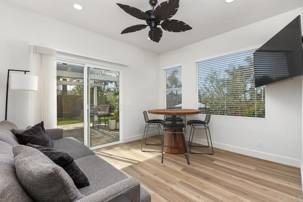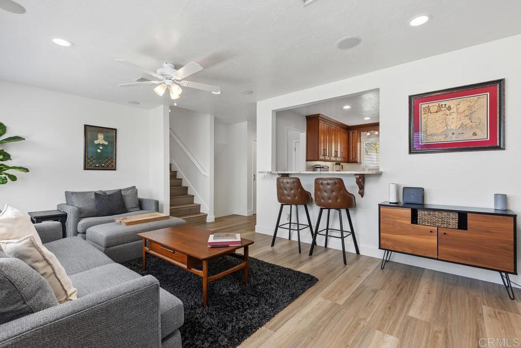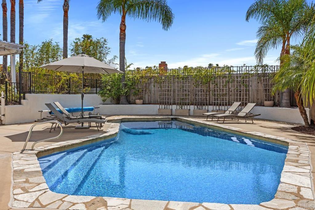 Enjoy relaxed coastal living in this beautifully updated, very private home featuring a resort-style backyard with a pool, spa, owned solar, ocean views, and no HOA. The main living spaces feel open and inviting with luxury vinyl plank flooring throughout and an easy flow between the kitchen, dining, and living areas. The living room offers a fireplace and surround sound, while the kitchen is equipped with granite countertops, stainless steel appliances, and bar seating that connects comfortably to the living space. The adjacent family room opens with a sliding door to the yard, where the BBQ island and patio overlook the pool creating a seamless indoor-outdoor connection ideal for entertaining. Remodeled half bath completes the main level. Upstairs offers three bedrooms and two updated bathrooms. Two bedrooms share a Jack-and-Jill bath, while the third is served by a separate hall bathroom. Two of the bedrooms open to a spacious deck where you can enjoy mountain and ocean views on clear days. The primary suite provides a private retreat with direct access to the backyard and pool, along with a beautifully remodeled bathroom featuring dual sinks and a walk-in shower. The backyard is designed for both relaxing and entertaining with a multi-level layout, pool and spa, and a covered patio with a BBQ island, all surrounded by mature landscaping. The pool includes a pebble finish, saltwater system, recently replaced pool vacuum, and solar heating. Additional improvements and features include owned solar, air conditioning, newer windows, interior and exterior paint, updated blinds, a closet organizer in the primary bedroom, ceiling fans in all bedrooms, a Ring doorbell, an Ecobee thermostat, a whole-house fan, updated fixtures, epoxy garage flooring with built-in storage, modern garage door and a finished storage area beneath the home. Conveniently located near parks, shopping, schools, and a short drive to the beach.