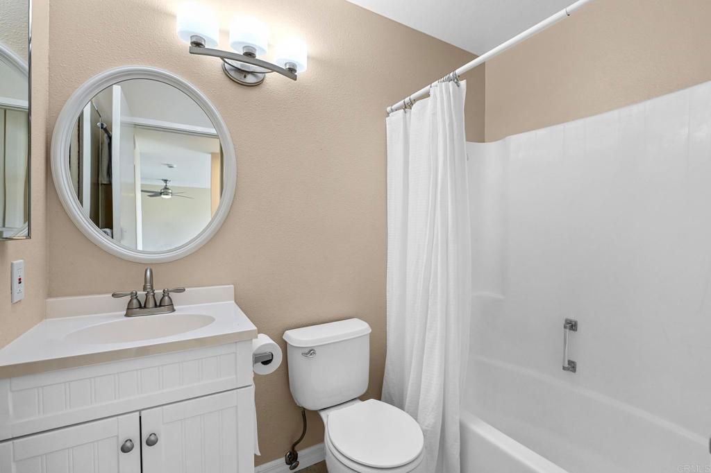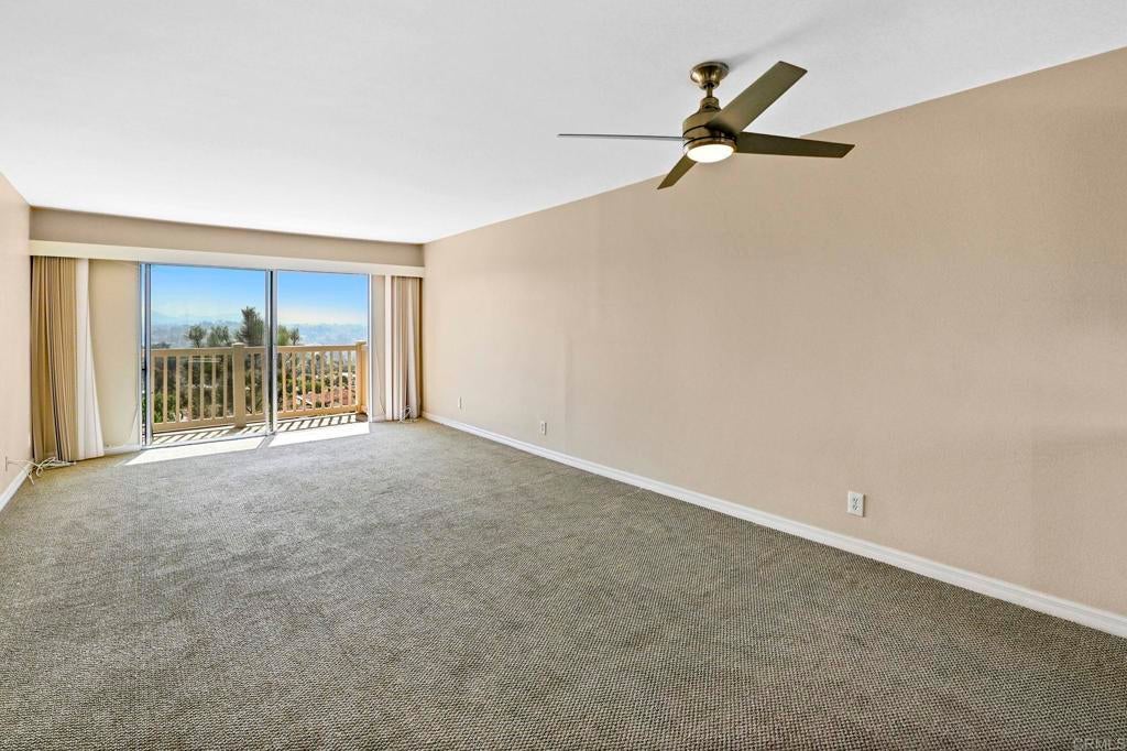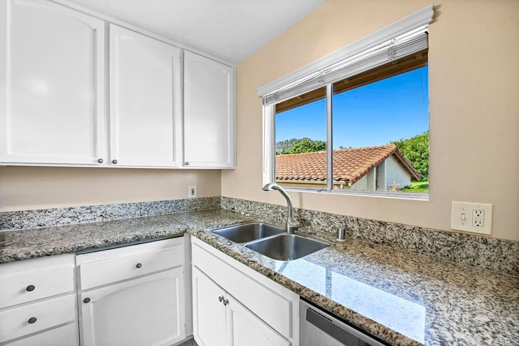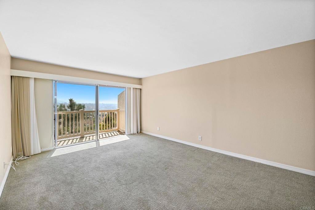 Best location in the development! Step into panoramic gorgeous Encinitas mountain views in this highly desirable quiet location in High Country Villas. Directly across the street from the beautiful 9 hole golf course, pickleball, pool and clubhouse. Upper unit with 2 bedrooms 1 bath home with no neighbors behind you. All new electrical panel just completed. Flooring, bathroom cabinet, lighting and kitchen counter tops all done. Popcorn ceilings removed. This single level town home is in a 55+ community that offers golf, swimming pool and spa, hiking/biking trails, clubhouse activities such as bocce ball, aqua aerobics, exercise classes, clubs and much more lifestyle and friendship. Less than 4 miles to moonlight beach and close to award winning shopping, dining, and medical. Enjoy unbelievable sunsets from the front of the property and follow the colors in the sky over the mountains from your private balcony in the back. Views from every window including golf course views, mountain views and hot air balloon views. Morning sunrises over the mountains are spectacular! Priced to sell so come see asap! Excellent rental with great possiblilites.