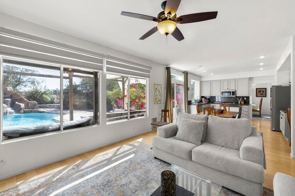 BACKYARD OASIS | CUL-DE-SAC | TOP-RATED SCHOOLS: Enjoy the ultimate Temecula lifestyle in this updated home located in the highly coveted Vintage Hills community with a breathtaking backyard oasis, resort-style pool, rock waterfall, waterslide, and lush yard. Whether you’re lounging, picking fruit from the trees, or enjoying the panoramic valley views of morning hot air balloons and evening fireworks - this private sanctuary is truly unmatched. Inside, the home has a bright open-concept layout that flows seamlessly with a gourmet kitchen featuring a walk-in pantry and premium stainless steel appliances. The versatile floor plan offers 5 possible bedrooms (including a downstairs den/bedroom and full bath), while the expansive primary suite is a peaceful retreat with some of the best views in the house. The 3-car garage has a separate workshop/storage space. Residents of Vintage Hills enjoy low taxes and HOA fees alongside luxury amenities including two community pools, tennis and basketball courts, and a clubhouse. Conveniently located near with access to wine country, the casino, shopping, restaurants, hospitals, and highly sought-after schools.