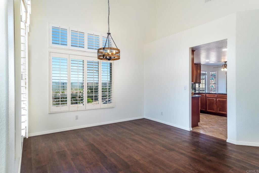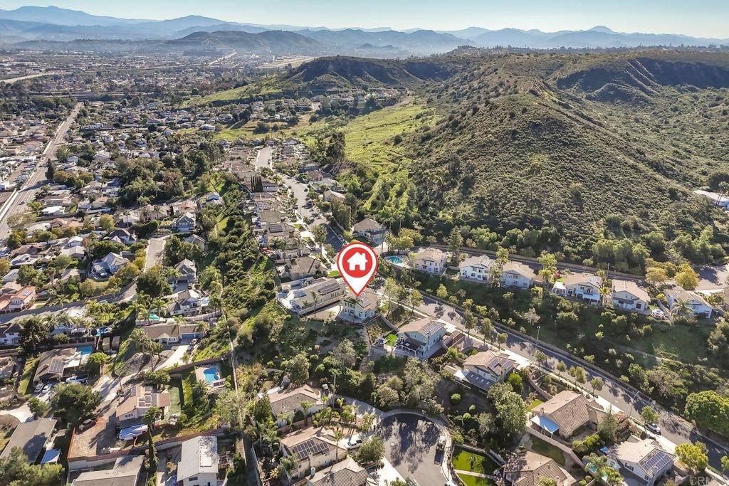 Sparkling panoramic vista views from one of the larger executive homes in the area, a stately entrance, and an immediate wow factor when you enter the property: This rare listing will check all of your new home boxes. Highly desired Mesa Heights: we present this two-story, 2,331 SF home with four bedrooms and 2.5 baths -- all updated. Powder room and full laundry room on the first floor. Four bedrooms and two full baths are up the sweeping staircase. Ceiling fans and updated lighting throughout the home. Soaring ceilings. Dark laminate floors anchor the downstairs. As you circle to the back of the house, the dining area transitions to the large, updated kitchen with granite counters and clean appliances. Then connected is a family room with fireplace. Large, fenced backyard -- spectacular views. Tidy and manicured. We envision holidays in this backyard! Low maintenance. And more: The solar panels on the roof are owned free and clear. The views of this home face to the north and west. The oversized primary bedroom with fully updated ensuite bath has a large, walk-in primary closet. All bedrooms are sunny and bright. Great storage in this house. White shutters or blinds throughout the home. This is a meticulous presentation for a buyer or buyers seeking a larger home with an attached three-car garage. Lot size is 7,791 SF. A wonderful green space bonus with this location is that you will be extremely close to Big Rock Park and Mission Trails Regional Park. We LOVE THIS VALUE for highly desired **Mesa Heights** and you will, too.