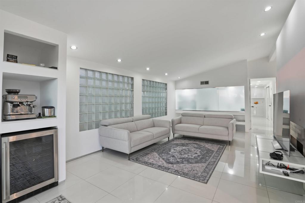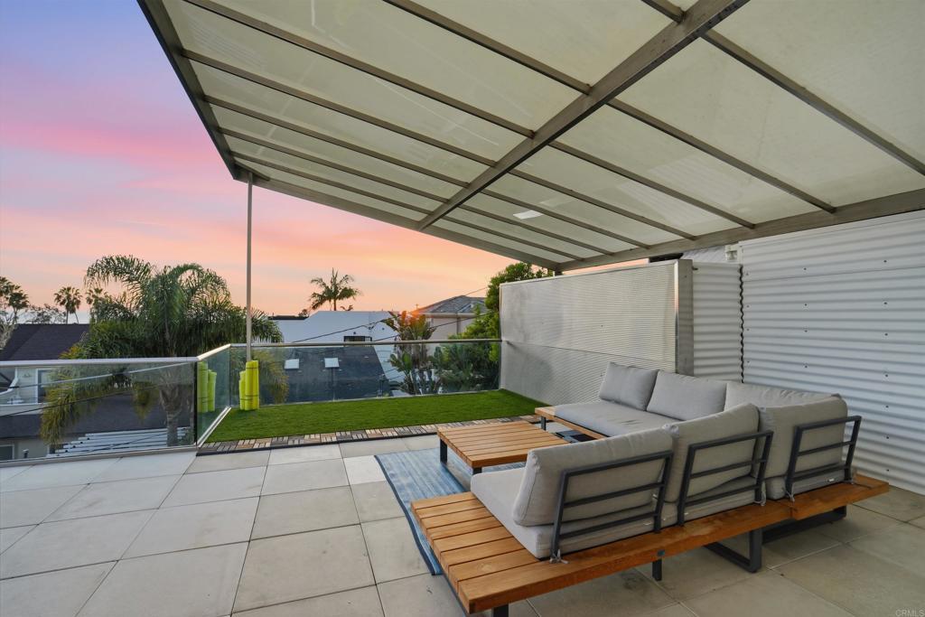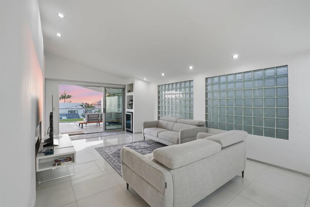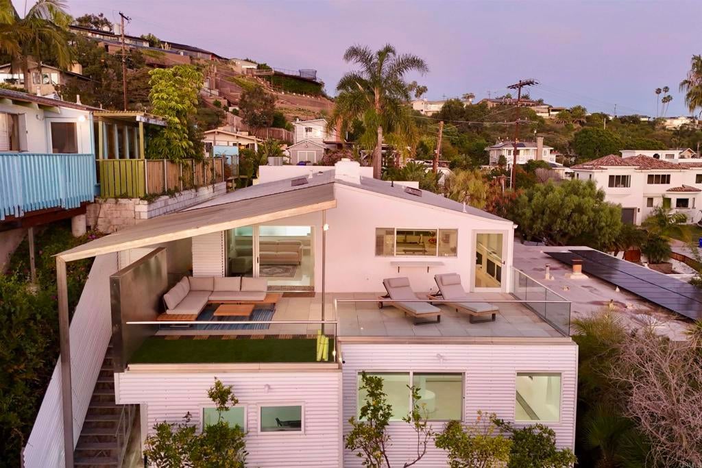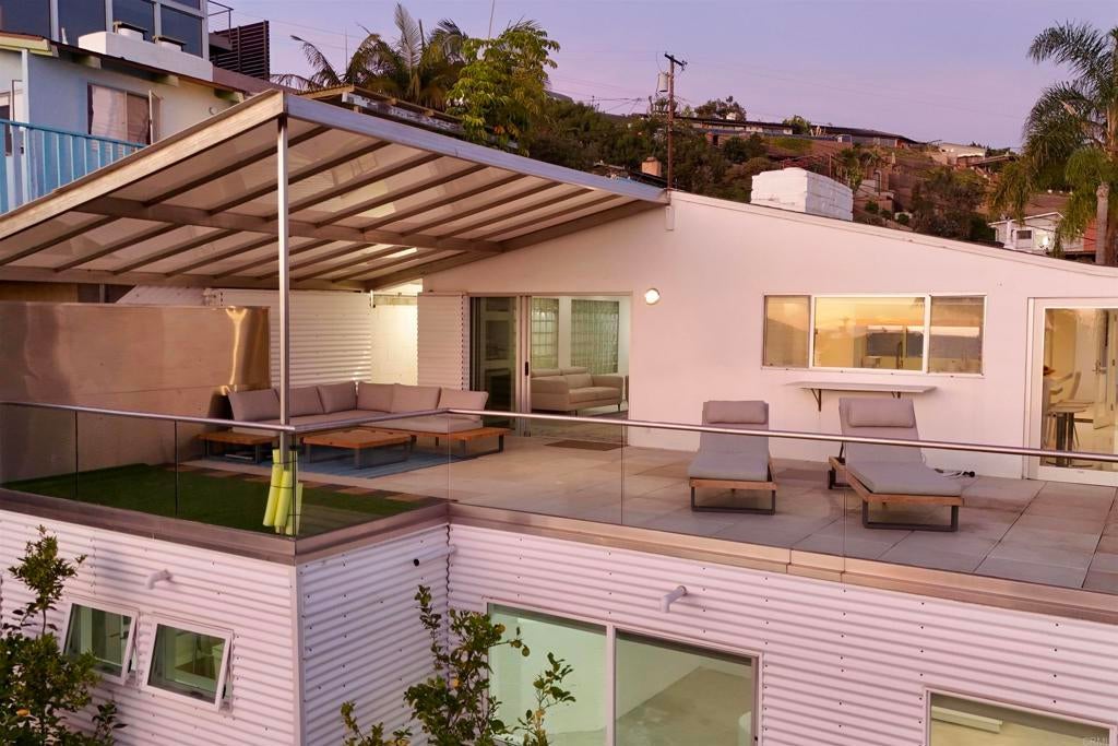 Perched on an elevated cul-de-sac in the heart of Bird Rock, La Jolla, this single-level modern home offers sweeping ocean and treetop views. Expansive windows fill the living spaces with natural light, while the living and dining areas each have a charming fireplace. The home’s showpiece is the permitted ~500 sq ft ocean-view terrace—ideal for seamless indoor-outdoor living—featuring a stainless steel pergola, tempered glass railings, and reinforced concrete tile flooring for unforgettable sunset evenings. Inside, custom finishes are paired with premium appliances and a wine fridge. Major upgrades over time include windows, doors, roof, HVAC, tankless water heater, and remodeled bathrooms. An additional ~400 sq ft lower-level bonus space (non-permitted) with full bath, sink, and mini fridge offers flexible use as a studio, office, or creative retreat. Conveniently located near the beach, local cafés, restaurants, and Bird Rock Elementary School.