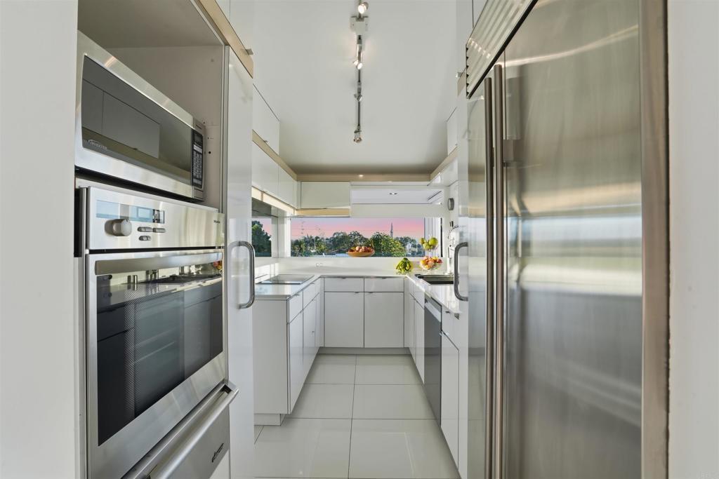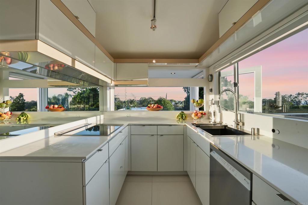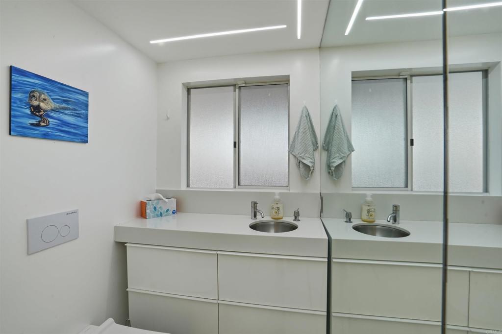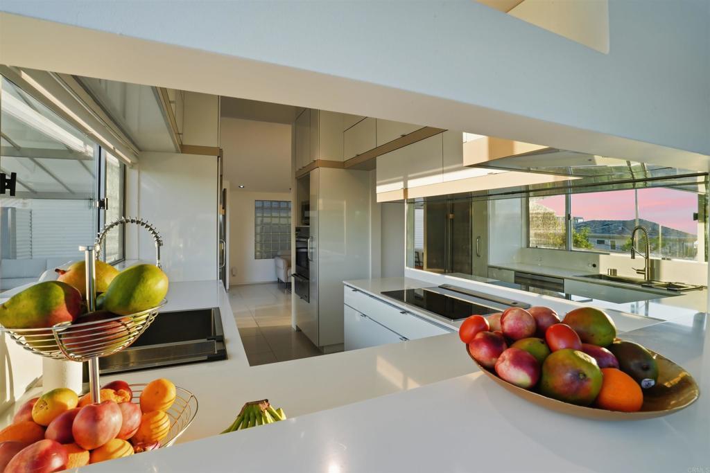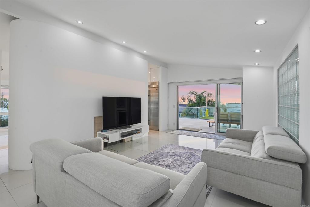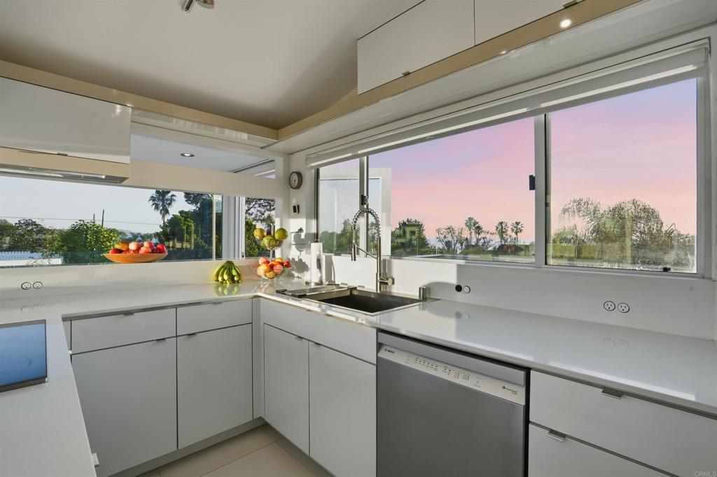 Perched on an elevated cul-de-sac in the heart of Bird Rock, La Jolla, this single-level modern home offers sweeping ocean and treetop views. Expansive windows fill the living spaces with natural light, while the living and dining areas each have a charming fireplace. The home’s showpiece is the permitted ~500 sq ft ocean-view terrace—ideal for seamless indoor-outdoor living—featuring a stainless steel pergola, tempered glass railings, and reinforced concrete tile flooring for unforgettable sunset evenings. Inside, custom finishes are paired with premium appliances and a wine fridge. Major upgrades over time include windows, doors, roof, HVAC, tankless water heater, and remodeled bathrooms. An additional ~400 sq ft lower-level bonus space (non-permitted) with full bath, sink, and mini fridge offers flexible use as a studio, office, or creative retreat. Conveniently located near the beach, local cafés, restaurants, and Bird Rock Elementary School.