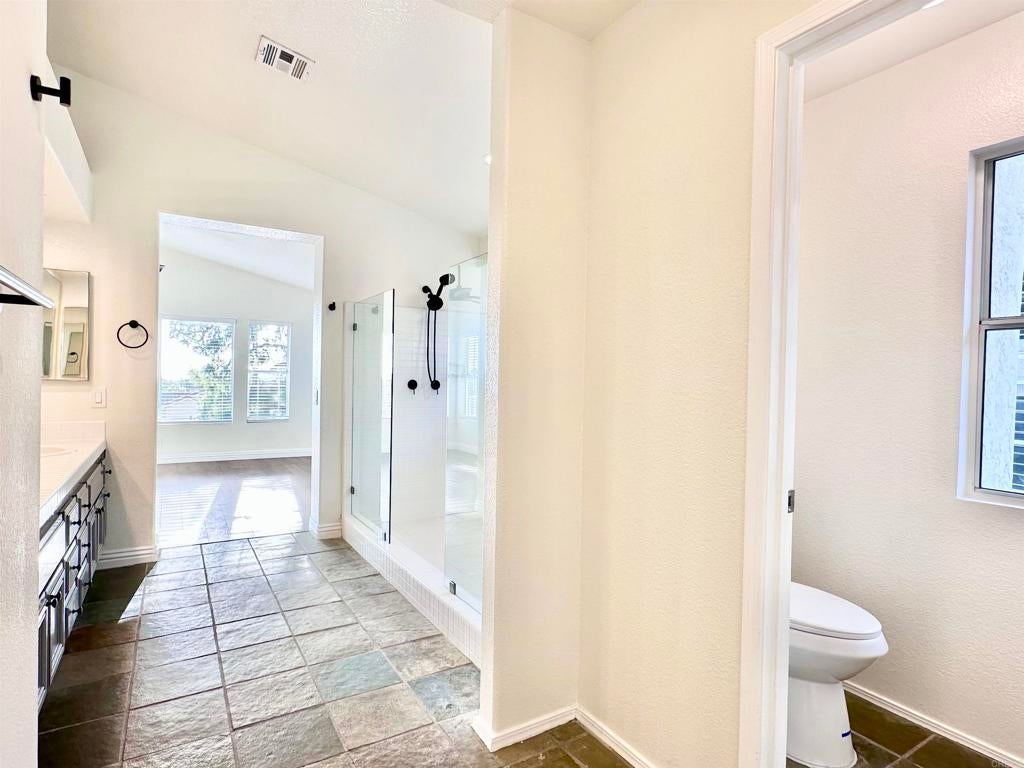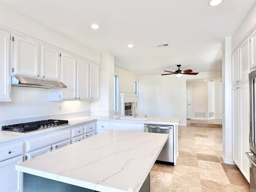Welcome to 5155 Via Seville in Broadmoor Hills in Ocean Hills, one of North County San Diego's most coveted communities. Nestled on a quiet cul-de-sac, this beautifully refreshed 3-bedroom, 2.5-bath home with loft offers 2,456 square feet of sun-drenched living space and the kind of versatile, move-in-ready canvas that today's buyers dream of finding. From the moment you step inside, soaring vaulted ceilings and an open floor plan invite you to imagine the possibilities. Fresh and ready for its next chapter, this home is a true blank slate just waiting for your personal touch. Travertine tile flows throughout the main level, grounding the family room, dining room, living room, kitchen, and laundry in understated elegance. The spacious kitchen features a large island, stainless steel appliances, and a double oven, with sliding doors opening to a covered patio, perfect for seamless indoor-outdoor California living. Beyond, a fully fenced private backyard offers endless potential: an outdoor kitchen, entertainment oasis, or play space where the whole family can enjoy the gentle coastal breezes that roll in each afternoon. Upstairs, the generous primary retreat is a true sanctuary complete with a secondary flex space ideal as a sitting room, home office, or nursery; a private balcony with peek-a-boo ocean views; a walk-in closet; and an oversized dual-head walk-in shower. Two additional bright, sizable bedrooms share a convenient jack-and-jill bath, and a loft with closet rounds out the upper level, equally suited as a home office, homeschool room, playroom, or guest retreat. Equally valuable are the "little" things: the oversized two-car garage, three-car-wide driveway, large laundry room with utility sink and cabinetry, additional linen closets and storage throughout, and pull-down attic access to a large space for stashing the seasonal decor. The ultra low maintenance landscaping thrives on neglect, and is ready to be expanded to suit any green thumb. The location just adds to the appeal: Lake Elementary, Madison Middle, and Rancho Buena Vista High are all just minutes away, as are parks, hiking trails, and the best stretches of the North County coast. A low HOA of just $83/month provides a gated dog park, picnic areas, and access to coveted RV and boat storage. With I-78 at close proximity, Carlsbad and downtown Oceanside are a quick shot to the west, San Marcos and Escondido to the east, and I-5 and I-15 keep the rest of San Diego well within reach to the south, and OC/LA/Temecula to the north. Come take a look, fall in love, meet the neighbors, and settle in just in time for summer in beautiful North County San Diego.