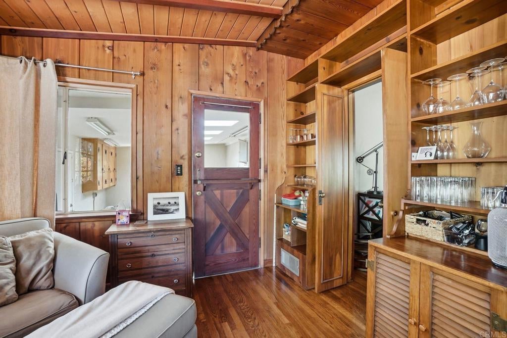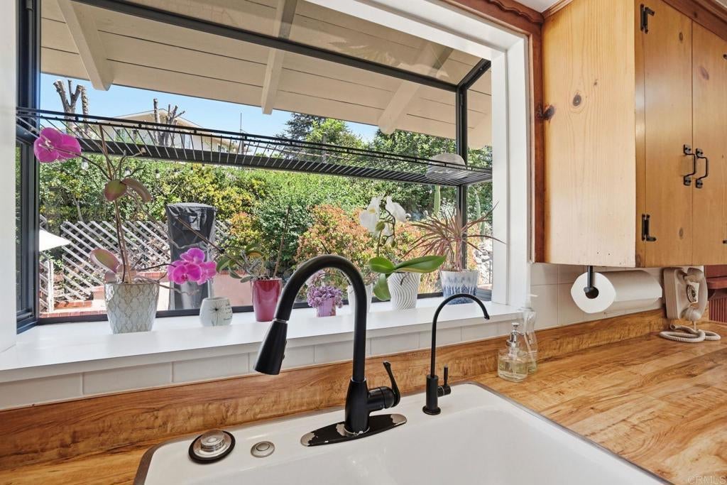 Nestled at the base of Mount Helix on an expansive and mostly level half-acre corner lot, this classic mid-century ranch blends timeless architectural character with meaningful modern upgrades. Originally built in 1952, the home showcases signature post-and-beam construction, rich wood detailing, and a striking vaulted ceiling that creates warmth and volume throughout the main living spaces. A welcoming veranda entry opens to a light-filled living room centered around a cozy wood-burning fireplace, flowing seamlessly into the formal dining area—ideal for both everyday living and entertaining. Large windows frame serene, park-like views of the surrounding landscape, enhancing the home’s indoor-outdoor connection. The property’s generous lot offers endless potential—whether you envision expanding, adding a pool, creating an ADU, or simply enjoying the privacy and space rarely found in this sought-after La Mesa enclave. Modern efficiency meets classic design with a brand new HVAC system, including both A/C and furnace replaced approximately one year ago. The home is also equipped with solar and battery backup, helping reduce energy costs while providing added reliability and peace of mind. Located in the desirable Mount Helix/Fuerte area, this home presents a unique opportunity to enjoy classic design with room to personalize, all within a peaceful, established neighborhood just minutes from shopping, dining, and freeway access.