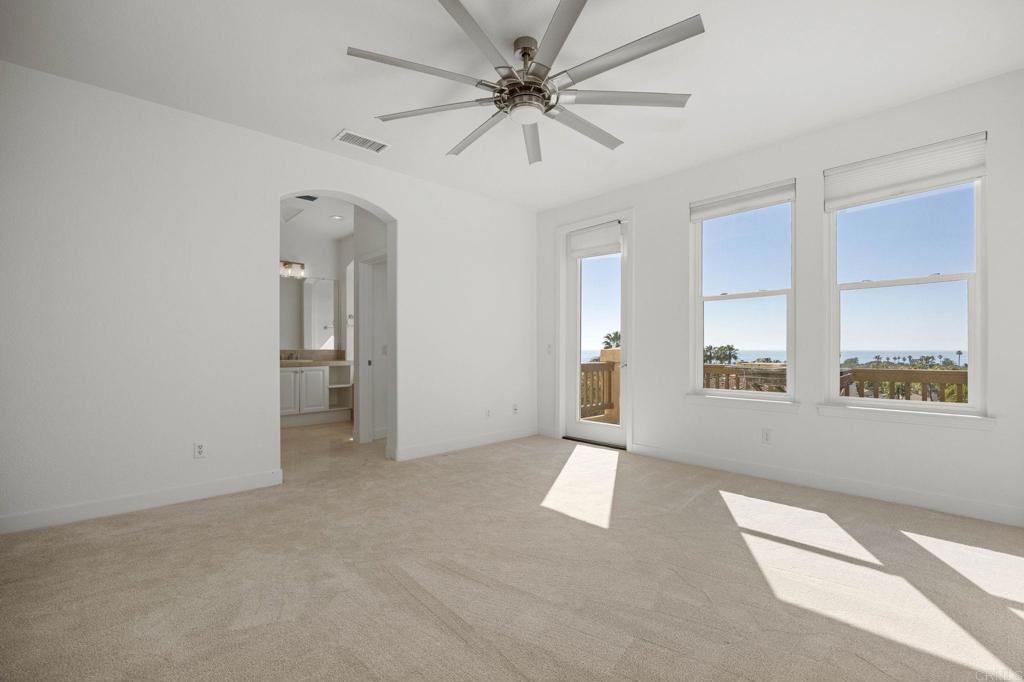 Prestigious Ocean View Beach Home Location: South Carlsbad, CA (West of I-5, Gated Community) Community: Santalina at San Pacifico Size: ~2,074 SqFt Bedrooms: 3 Beds + Optional 4th (Den/Office/Bedroom on 1st Floor) Property Highlights: Panoramic White Water Views: Elevated views from the Primary suite and throughout the home. Prime Location: West of 5 frwy, walk to the beach, enjoy nightly ocean breezes and sunsets. Gated Community: Private and secured in the sought-after Plan 2 floorplan. Upgrades & Tech: Newer AC/HVAC with filtration system, upgraded windows, and built-in tech center/desk for remote work, electric charger, Solar. Outdoor Living: Private, landscaped courtyard with colorful pavers, maintenance-free grass, and accent lighting. Storage: Large primary bathroom with jacuzzi tub and separate shower, plus a shelved attic with dropdown ladder access. Interior & Lifestyle: Large Primary suite with private balcony. Spacious open layout with abundant ocean light. Savor the view of amazing sunsets. Community pool at San Pacifico. Experience refined coastal living in the heart of South Carlsbad!