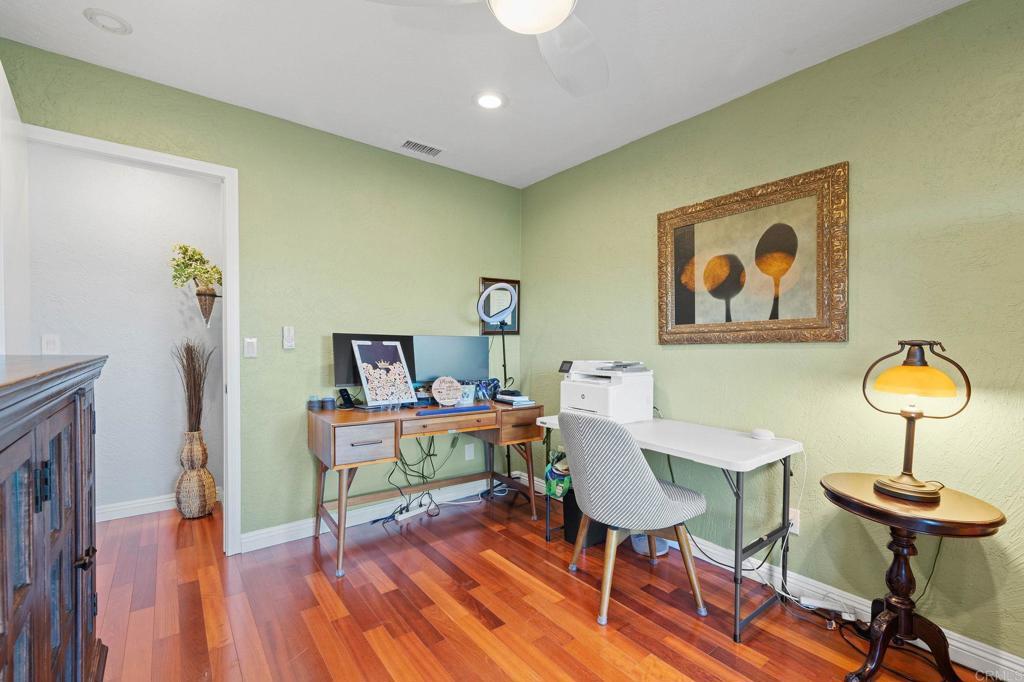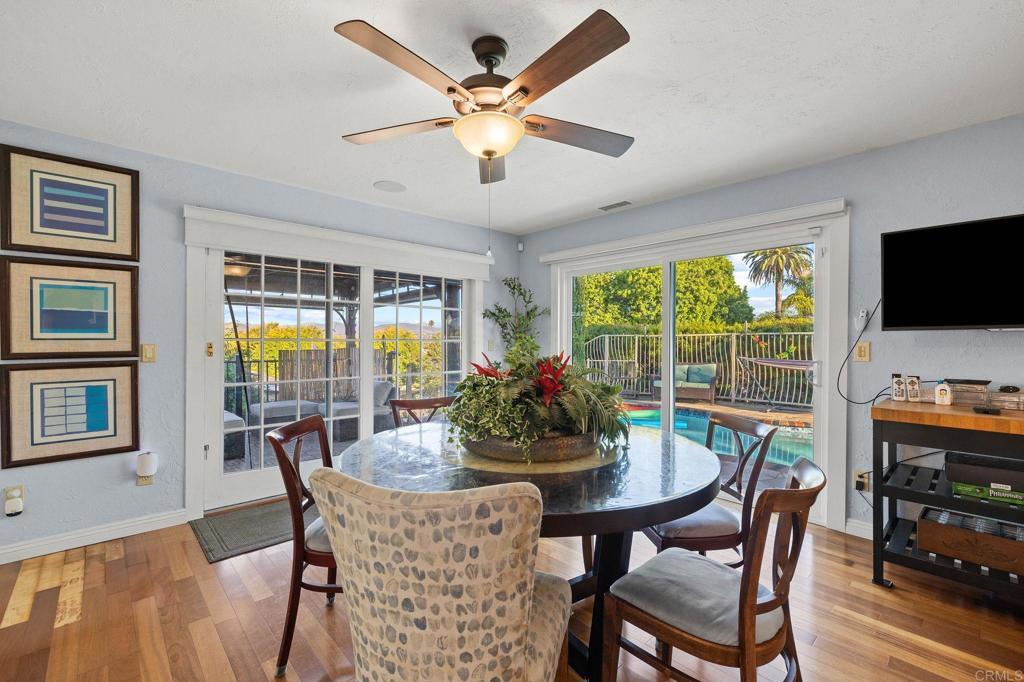 A rare opportunity to own a beautifully remodeled single-story ranch-style home in the highly sought-after Fletcher Terrace neighborhood, where panoramic valley view’s meet timeless design. 3 Bedrooms, 3 Bathrooms, 1,818 sq ft. Two spacious primary suites with custom cabinetry and spa-style bathrooms. Oversized eat-in kitchen with stainless steel appliances and custom pantry. Formal living room with wood-burning fireplace and built-in cabinetry. Bonus office/den ideal for remote work or creative space Hardwood floors, recessed lighting, crown molding, and plantation shutters throughout. 8,000 sq ft corner lot with city lights and valley views. Quiet, well-maintained neighborhood with a low HOA fee. Minutes from Fletcher Parkway’s shops, restaurants, and major thoroughfares. Zoned R1 with top-rated schools nearby. This home is a true standout — blending comfort, style, and convenience in one perfect package. Replastered in-ground pool, hot tub, and custom pergola. Lush drought-tolerant landscaping with mature fruit trees. 3-car garage, solar system, new retaining wall, and upgraded pool equipment.