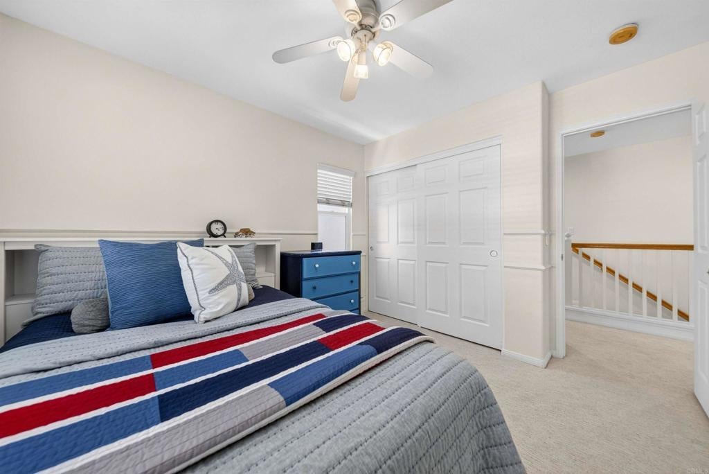 Set on a sought after corner lot in the Allegra neighborhood of Rancho Peñasquitos, this inviting home blends thoughtful updates with comfortable everyday living. Fresh interior and exterior paint, new carpet upstairs and on the stairs, new turf in the front yard, and a new garage door create a bright and refreshed feel from the moment you arrive. Inside, welcoming living spaces are enhanced by custom built-ins that add both character and convenience, including cabinetry in the primary bedroom and office, shelving in a secondary bedroom, and a built-in desk area in the family room. The spacious primary suite offers a relaxing retreat with a large walk-in closet featuring built-in cabinetry and a private ensuite bathroom with a new shower enclosure. The backyard provides a peaceful setting to unwind with a patio, grassy space, and lush landscaping featuring avocado, pomegranate, and dwarf lemon trees. Additional highlights include an updated HVAC system, interior laundry room with generous storage, and garage shelving, cabinets, and overhead racks. The Allegra community features a tot lot and welcoming feel all while being zoned for top schools and conveniently close to parks, hiking trails, Miramar Lake, shopping, dining, and freeway access. This home offers an amazing balance of comfortable living, easy entertaining, and enjoying the best of San Diego’s outdoor lifestyle!