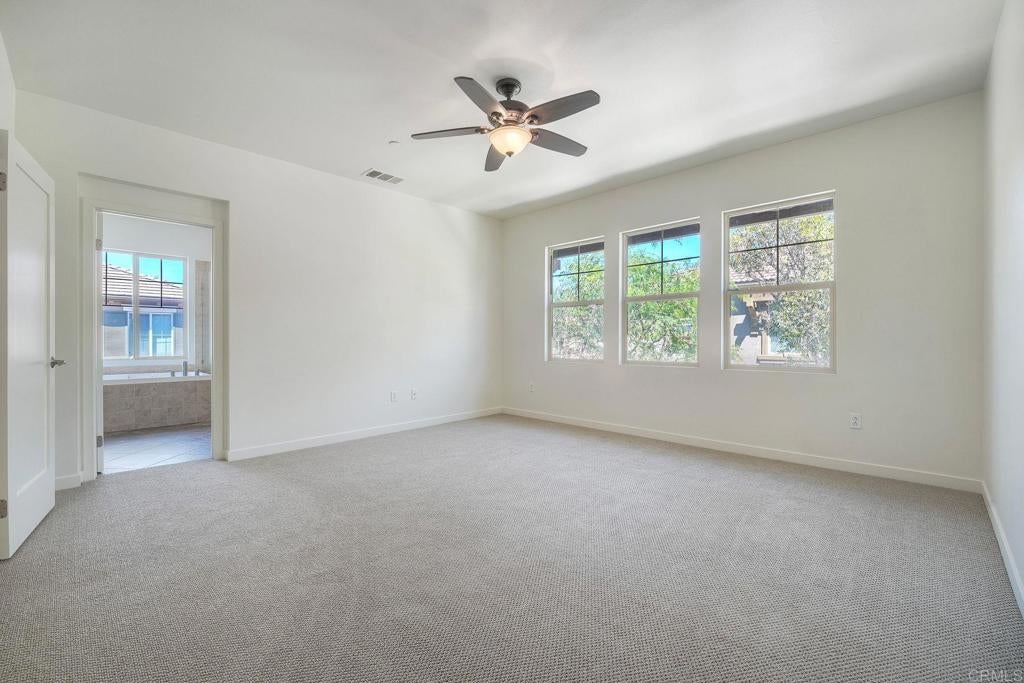 End unit townhome, four bedroom, 2.5 bathrooms in the heart of Carmel Valley within walking distance of Sage Canyon Elementary and Sage Canyon Park. The breezes and open feeling are felt in and out of the house. The lower level is hardwood floors throughout with high volume ceilings. The great room is drenched in natural light. The kitchen is huge with tons of storage and counterspace with natural stone counter tops, plus a large walk-in pantry. A breakfast bar is great for the quick snack or meal. Stainless appliances cap off the perfect cook's space. There is a half bath on the lower level and an attached two car garage. Upstairs are 4 ample sized bedrooms with an ensuite main and a shared full bath for the remaining bedrooms, with celling fans in every room. A full sized laundry room too.