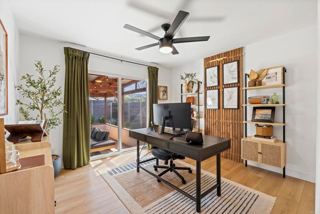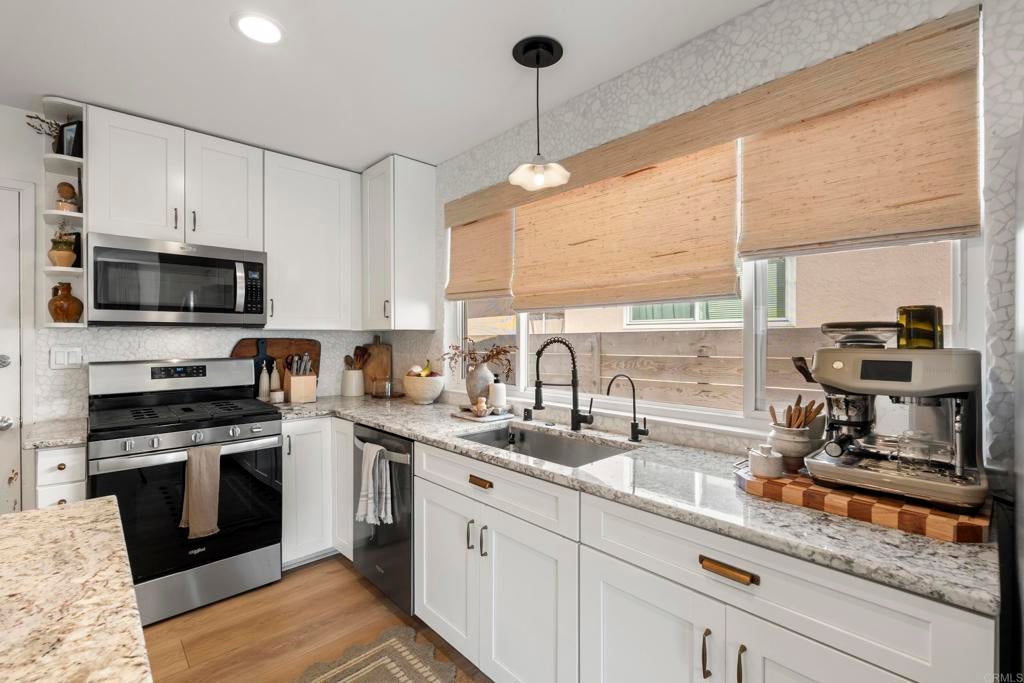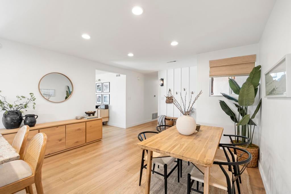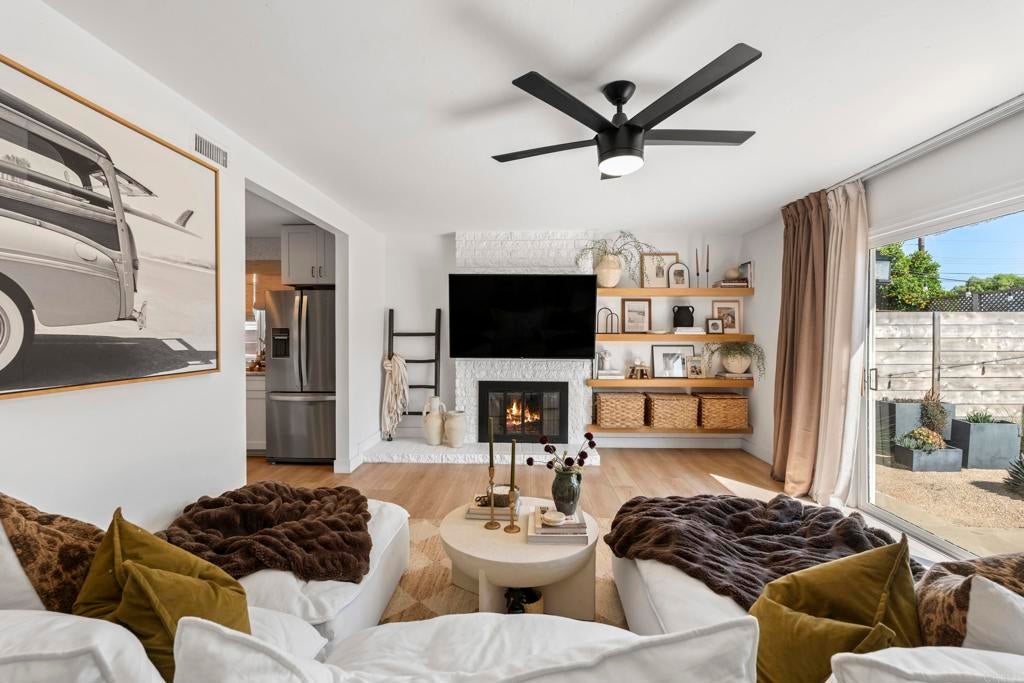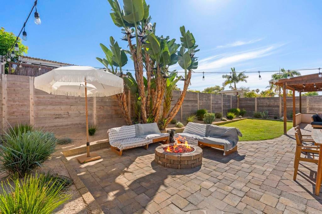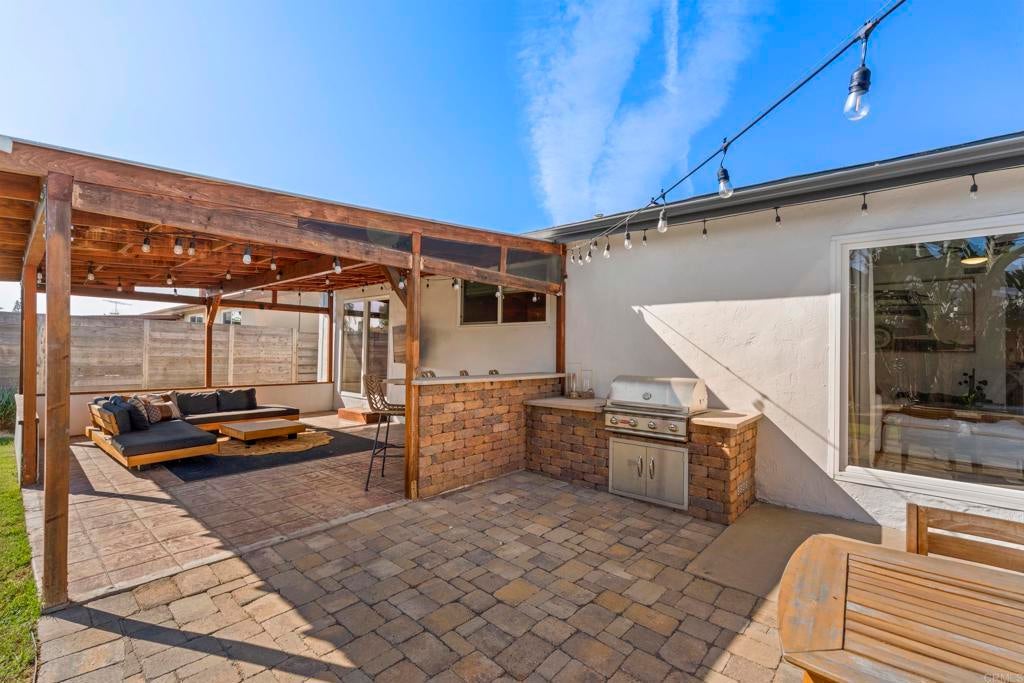 Move-in ready, light and bright Clairemont single-story with an incredible private backyard made for entertaining. The open-concept kitchen, dining, and living area flows seamlessly outdoors, where a covered lounge with TV, bar seating, built-in grill, fire pit and low-maintenance landscaping create multiple zones for relaxing and gathering. Inside, the updated kitchen features white cabinetry, granite counters, stainless appliances and an island with counter seating, while the airy bedrooms offer a calm, modern retreat. Enjoy A/C, a usable front yard with contemporary fencing, and convenient freeway access -all on a pride-of-ownership street. This one won't last.