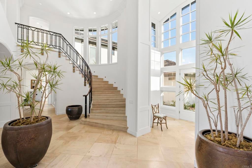 Welcome to 7891 Muirfield Way—a rare and extraordinary estate set on one of the most coveted lots within the prestigious guard-gated community of The Farms at Rancho Santa Fe. The LARGEST lot in The Farms is tucked away at the end of a quiet cul-de-sac, this property stands apart as one of the finest in the community, offering an exceptional combination of privacy, scale, and usability that is nearly impossible to replicate. What truly defines this estate is the yard—a rarity in The Farms. Expansive, lush, and incredibly private, the property boasts an abundance of flat, usable grassy lawn, creating a setting that feels both grand and intimate. It is exceptionally uncommon to find a cul-de-sac location with this level of space, greenery, and seclusion, making it one of the most desirable outdoor environments in the neighborhood. Adding to its uniqueness, the property offers direct gated access to the award-winning Relais & Châteaux property when joining the Rancho Valencia Resort & Spa membership, creating a seamless extension of your lifestyle with world-class wellness, dining, and leisure just moments away. Upon arrival, an impressive entryway opens to a beautifully flowing floor plan defined by soaring ceilings and an abundance of natural light. The home has been extensively upgraded throughout, featuring new hardwood flooring, all-new landscaping with curated outdoor lighting, a brand-new ADT security system, solar, surround sound, and countless thoughtful enhancements. The chef’s kitchen is both elegant and functional, appointed with top-of-the-line appliances, Carrara marble and Basaltina countertops, and custom walnut cabinetry—perfectly suited for both intimate gatherings and large-scale entertaining. Designed with modern family living in mind, the layout is exceptional. An entire dedicated children’s wing offers three en-suite bedrooms, its own private family room, homework room and a separate entrance leading directly to the basketball court—creating an ideal retreat for kids and a natural gathering place for friends. This thoughtful separation provides both connection and privacy, making the home as functional as it is beautiful... a place where all the friends will gather on the weekends, and that is priceless! Five spacious bedroom suites are conveniently located on the main level, along with formal living and family rooms that offer versatility and comfort. Privately situated on the upper level, the primary retreat is a true sanctuary, complete with two separate terraces, a generous walk-in closet, and a newly remodeled spa-inspired bathroom. An adjacent office with fireplace, outdoor patio, and sweeping views offers flexibility as an additional bedroom or creative space. The resort-style backyard is equally captivating, designed for effortless indoor-outdoor living. Enjoy a pergola-covered dining area that seats 25 people with BBQ and fireplace, a stunning 70-foot lap pool, and multiple seating areas—set against the backdrop of expansive lawn and complete privacy. Residents of The Farms enjoy access to one of Rancho Santa Fe’s premier golf courses, recently reimagined through a comprehensive renovation, further elevating its prestige. The home is also served by the award-winning Solana Santa Fe School (K–6), which has just completed a major modernization. Set within a 24-hour guard-gated community and just minutes from Rancho Valencia Resort & Spa, top-rated schools, shopping, dining, and coastal amenities, 7891 Muirfield Way represents the pinnacle of luxury, privacy, and lifestyle in Rancho Santa Fe—anchored by one of the most exceptional lots in all of The Farms.