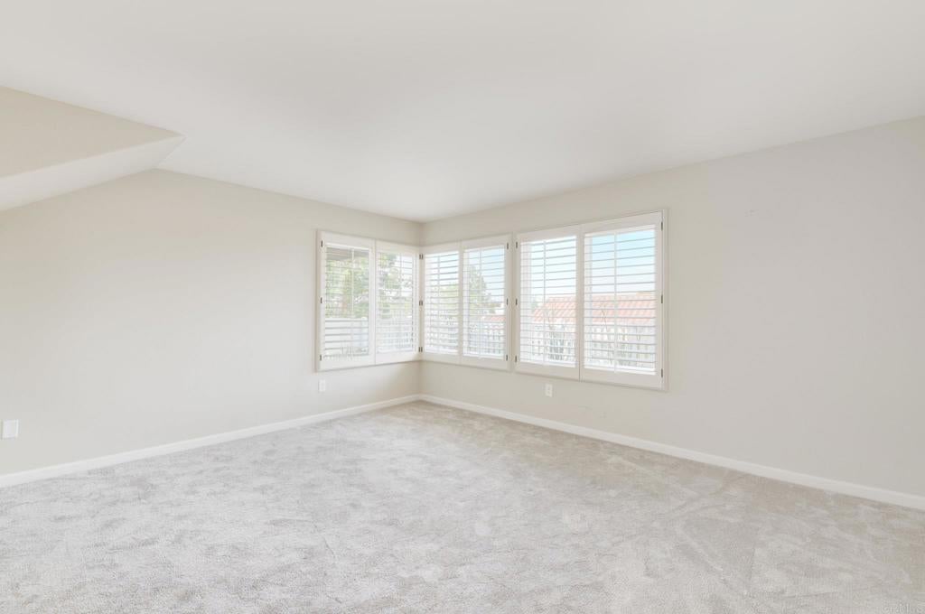 Tucked away at the end of a peaceful cul-de-sac, this beautifully maintained end-unit residence featuring the highly desirable Bellagio floor plan within the gated community of Ocean Hills Country Club offers the perfect blend of privacy, comfort, and elevated living in one of Oceanside’s most sought-after 55+ communities. From the moment you arrive, a charming arched entry welcomes you into a thoughtfully designed home filled with natural light. Soaring vaulted ceilings and expansive windows create an airy, open ambiance, while the spacious living area invites both relaxation and effortless entertaining. The kitchen is well-appointed with generous counter space, ample cabinetry, and functionality that caters to everyday living. Upstairs, a versatile loft-style retreat opens to a private veranda overlooking tranquil, nature-filled views, an ideal setting for morning coffee or unwinding at sunset. The primary suite offers a peaceful escape, complete with large windows that frame the surrounding greenery. An additional upstairs bedroom features a walk-in closet and a walk-in soaking tub with a watertight door, blending comfort with accessibility. Designed with flexibility in mind, the home lives like a single story if desired, featuring a convenient downstairs bedroom and full bath. Additional highlights include solar, an attached two-car garage, and generous parking with a private driveway and cul-de-sac access. Life at Ocean Hills Country Club is truly unmatched. Residents enjoy a resort-style lifestyle featuring a private 18-hole executive golf course with no greens fees, a solar-heated Junior Olympic pool and spa, and a vibrant clubhouse at the heart of the community. Amenities include tennis, pickleball, paddle tennis, bocce, croquet, and shuffleboard courts, along with a fully equipped fitness center, performance hall, library, billiards room, media spaces, craft studios, computer lab, and even a dedicated woodworking shop. The community is enriched with scenic parks, a private dog park, and a 2.5-mile walking path, all within a 24/7 guard-gated environment offering peace of mind and security. Additional conveniences include complimentary on-site RV parking—an exceptional bonus. This is more than just a home—it’s an invitation to experience a lifestyle defined by ease, connection, and elevated everyday living.