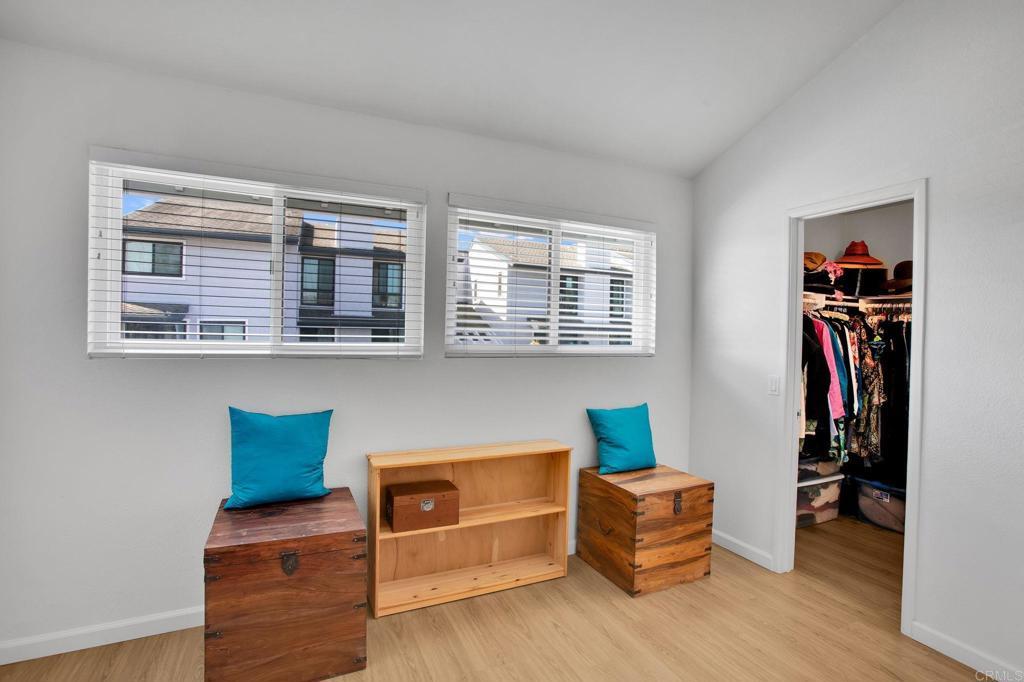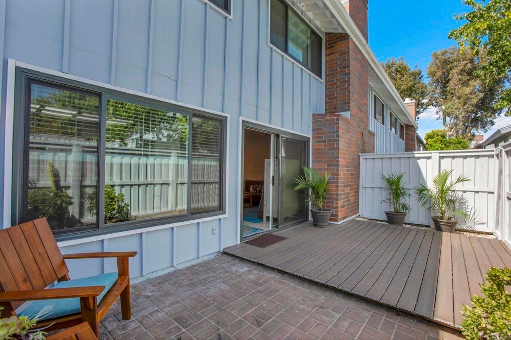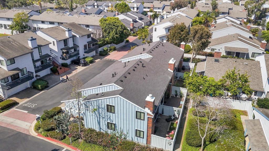 Welcome to this beautifully maintained 3-bedroom, 2.5-bath townhome, ideally positioned on a quiet street within the highly coveted Southpointe community of La Jolla Village. Offering a refined blend of comfort and style, this home showcases a light-filled, open-concept floor plan enhanced by stone tile flooring, crisp white interiors, and recently upgraded dual-pane windows and sliding doors. The main level is thoughtfully designed for both everyday living and effortless entertaining, featuring a spacious living room anchored by a corner fireplace, a defined dining area, and a well-appointed kitchen with stainless steel appliances. Sliding doors extend the living space outdoors to a private patio bathed in soft morning light—an inviting setting for al fresco dining or quiet relaxation. A half-bath powder room completes the main floor for added convenience. Upstairs, all three bedrooms feature durable vinyl plank flooring, including the expansive primary suite with vaulted ceilings and a private en-suite bath. Two additional generously sized bedrooms share a full hallway bathroom. Additional highlights include a two-car garage with a newly replaced washer and dryer, and three resort-style community pools and spas within walking distance! This home's convenient location offers easy access to UCSD, I-5, world-class beaches, UTC, premier shopping, dining, and more. A rare opportunity to own a turnkey residence in one of La Jolla’s most desirable communities, where location, lifestyle, and livability come together seamlessly.