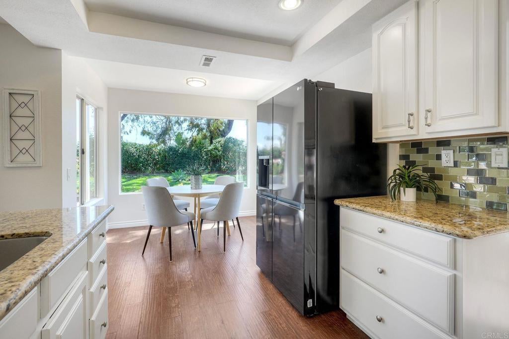 Welcome to the Pacific Views neighborhood, one of Oceanside's best kept secrets! This spacious 5-bedroom, 3-bath residence offers an ideal layout, including a convenient downstairs bedroom and full bath—perfect for guests or multigenerational living. Situated on a generous lot, this lovely home boasts open backyard views with added privacy, as the homes behind sit at a lower elevation. Fully paid-off solar adds efficiency and long-term savings. Step inside to soaring vaulted ceilings that create a bright, airy atmosphere. The downstairs features continuous flooring throughout, leading into an open-concept kitchen that flows into the family room and connects directly to the dining area—perfect for entertaining. A cozy breakfast nook overlooks the lush backyard, offering a peaceful place to start your day. Upstairs, you’ll find four additional bedrooms, including a spacious primary suite with flooring, a walk-in closet, and beautiful views. The front bedroom is generously sized, these remaining bedrooms feature brand-new carpet. The expansive backyard is designed for outdoor living, with a wraparound patio offering plenty of space for gatherings, relaxation, and enjoying the Southern California lifestyle. Fruit trees include orange, peach, nectarine & avocado! Additional highlights include air conditioning and a rare 3-car garage. Ideally located near the scenic fairways of El Camino Country Club and less than 5 miles from the Pacific Ocean and its beaches. Enjoy easy freeway access and close proximity to shopping, dining, theaters, coffee shops, Trader Joe's and medical facilities. Nearby attractions include Lake Calavera Preserve with its hiking trails, the Oceanside Harbor & Pier with it's wide array of restaurants & boating facilities. NO HOA or MELLO ROOS!