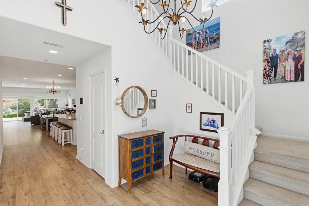 Enjoy the finest of Fallbrook living in this immaculate 3 bed, 3 bath luxury Horse Creek Ridge home with fully paid solar. Past the long spacious driveway and lush landscaping of the front yard, awaits your new home with a bright open concept kitchen, upgraded stainless-steel appliances and InstaHot faucet. The 4-seat bar connects diners with the family chef. Generous pantry helps keep large unwanted items off the granite countertops. The ground floor primary suite ensures you will enjoy the space without needing to walk the stairs. Primary bedroom enjoys a picture window view of the serenely private backyard and includes a large soaking tub, spacious step-in shower, and a massive walk-in closet. There is also a first-floor secondary bedroom next to a 3-piece bath. Upstairs you find the third bedroom next to a 3-piece bath and an expansive loft. Your private backyard features Italian stone patio and automated awning for shade on command complete with lush, low-maintenance landscaping provides a calming influence at the end of a long day as you take in the gorgeous Fallbrook sunset. Home also includes luxury vinyl plank flooring, high end window treatments (plantation shutters, remote control motorized roller blinds), and tankless water heater. High ceilings in the garage provide outstanding storage opportunities. Horse Creek Ridge is a community of recently built homes and offers a commuter-friendly location just minutes to both the 15 and 76; and includes amenities such as the Harvest House community center, pools, barbecues, playgrounds, sports complex, and direct access to the Monserate Mountain hiking trail network. You’re new life is just a short drive to a small town where you’ll see faces you know as you shop local grocery stores, coffee shops, restaurants, art studios, farmer’s market or attend many of the town’s fun events such as the Avocado Festival, Vintage Car Show, Farmer’s Market, Bob Burton Center for the Arts, Playhouse Theater, Art Center Shows, Library events, Veteran's Day, 4th of July and Christmas parades.