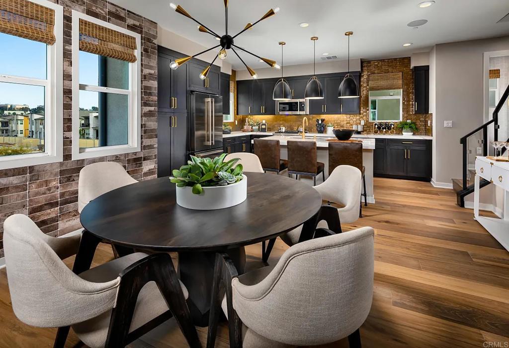 Model home plan 6 offers an impressive array of designer-selected upgrades that elevate the living experience in the 3Roots community of Sorrento Mesa. This townhome is thoughtfully appointed with high-quality features that ensure both style and convenience. Upgraded flooring throughout the home for a modern and elegant look. A kitchen designed with custom countertops and a unique custom backsplash, complemented by maple Shaker-stained cabinets. Stainless steel appliances, including a refrigerator, provide both functionality and contemporary appeal. An open rail staircase adds architectural interest and a spacious feel to the main living areas. Window coverings selected by professional designers enhance privacy and style. Builder-installed music and security packages deliver entertainment and peace of mind. A dedicated laundry area equipped with a washer and dryer for added convenience. Owned solar panels contribute to energy efficiency and sustainability. Many additional professionally designed features are included to ensure a luxurious and comfortable lifestyle. This is your opportunity to own the beautiful Atwood-Model Home, plan 6, BR + office, 2.5 BA town home with 2 car garage attached. The recently built green community has designated more than 200 acres as preserved open space, with trails, parks, and paseos offering outdoor gathering and recreational spaces for all ages. Close to restaurants and shopping. Enjoy the resort-style amenities state of art clubhouse, fitness center, two pools, dry sauna, hot tub and recreation parks. This dynamic community sits 17 miles north of downtown San Diego and approximately 10 minutes from the California coastline, discover the stylish Atwood at 3 Roots neighborhood.