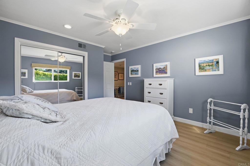 Welcome to this beautifully upgraded single-story home in the highly desirable Laketree Estates community of Fallbrook, just moments from the renowned Monserate Winery and located within the Bonsall School District. Situated on a spacious and usable 0.36-acre lot with ADU potential, this property offers the perfect blend of comfort, functionality, and outdoor enjoyment. Ideal for both families and those seeking a more relaxed lifestyle, this single-story home features an open-concept layout designed for privacy, comfort, and easy living. Inside, you’ll find an open and inviting floor plan with updated flooring, fresh finishes, crown molding, and abundant natural light throughout. The home offers 3 bedrooms, 2 bathrooms, and a versatile bonus space ideal for a home office, hobbies, or additional living needs. The bedrooms are comfortably sized, and the home includes additional storage above the garage, along with an enclosed garage area currently used for laundry and extra storage. Step outside to your own private retreat featuring a sparkling swimming pool and spa with a newly added electric heater, tastefully composed landscaping with stone pathways, and numerous fruit trees—creating a peaceful and functional outdoor space ideal for relaxing or entertaining. Paid solar adds energy efficiency and long-term savings. The expansive lot offers ample space for outdoor living, entertaining, and future customization. Additional upgrades include exterior paint, updated baseboards and door trim, upgraded window panels, energy-efficient mini-split HVAC system, and more—reflecting over $60,000 in recent improvements. Located within the Bonsall School District and offering both privacy and convenience, this home is ideal for those seeking a peaceful lifestyle with easy access to nearby amenities, wineries, and North County attractions. Don’t miss the opportunity to own this move-in ready property with exceptional indoor-outdoor living and future potential in one of Fallbrook’s most sought-after neighborhoods. Buyer to verify all information, including but not limited to property condition, square footage, lot size, zoning, and ADU potential.