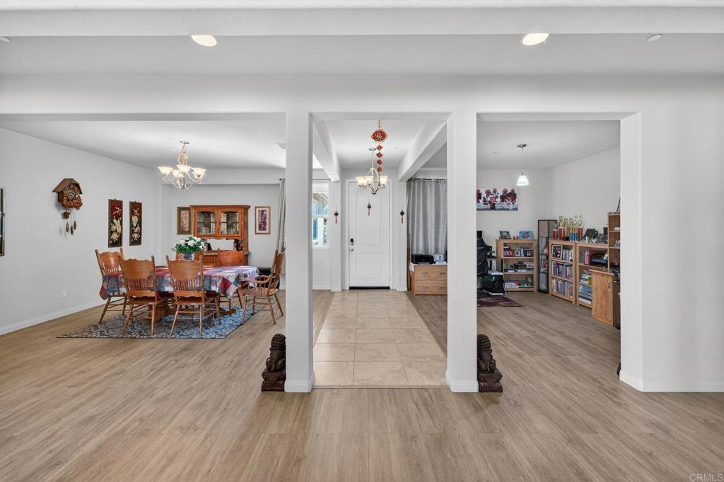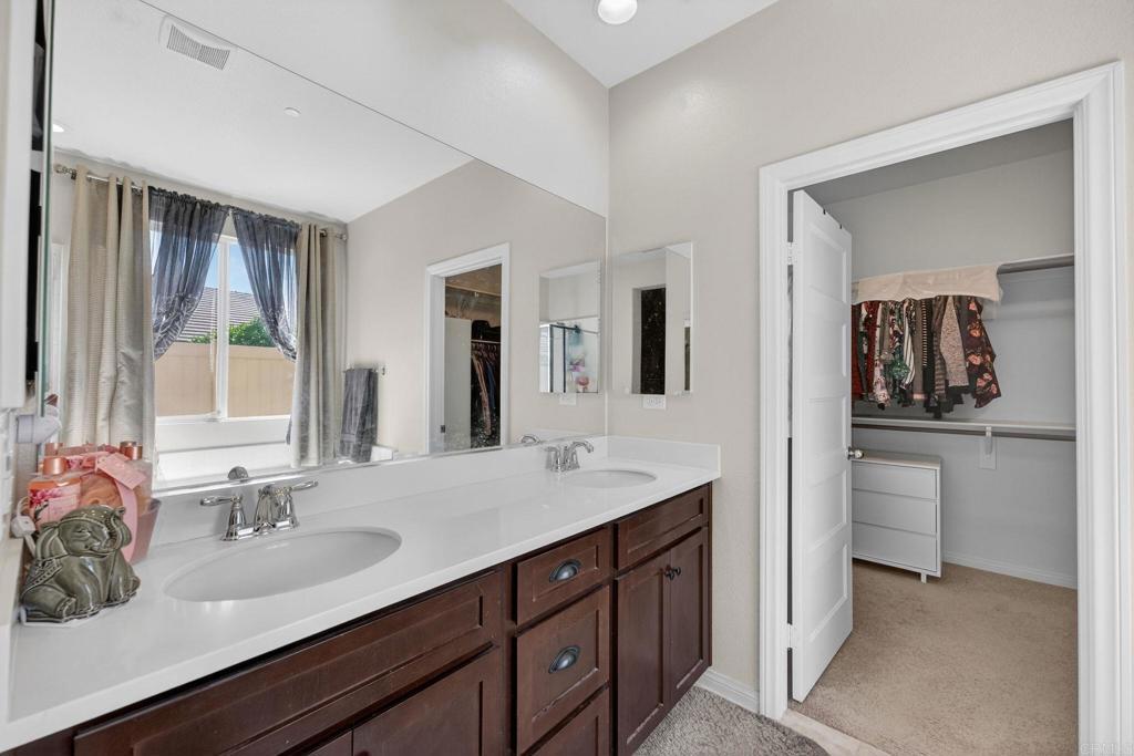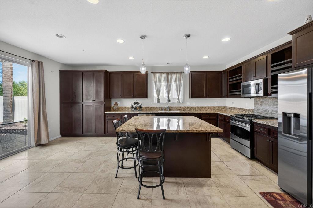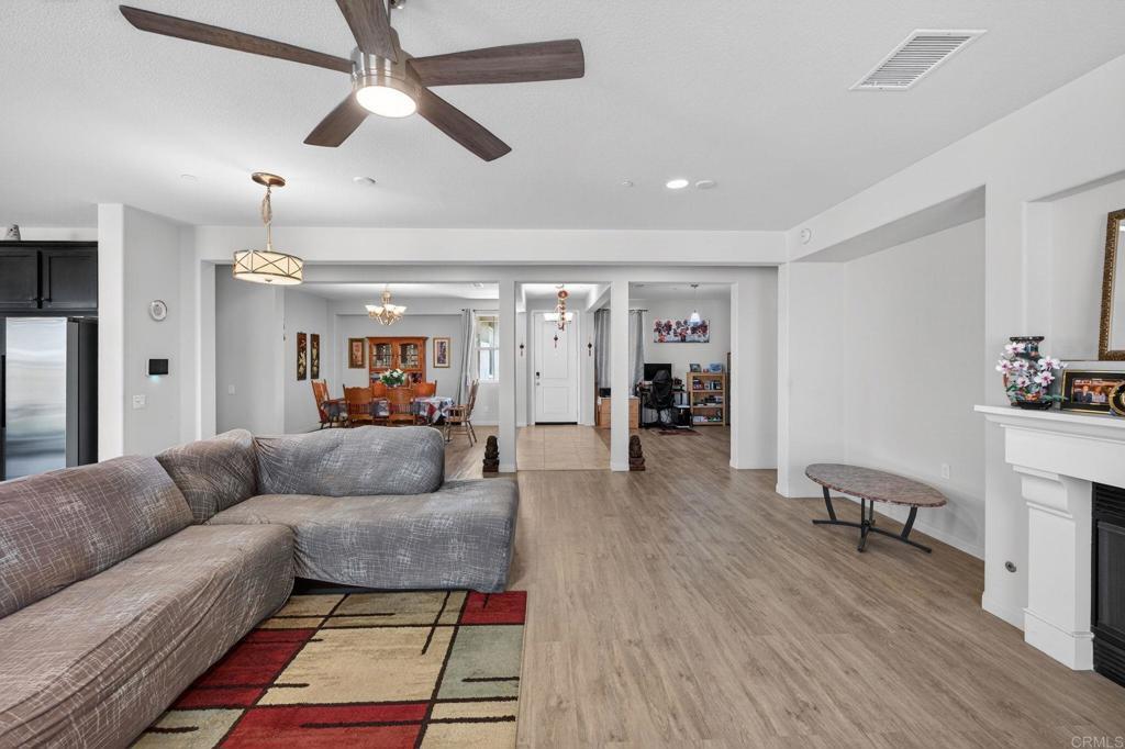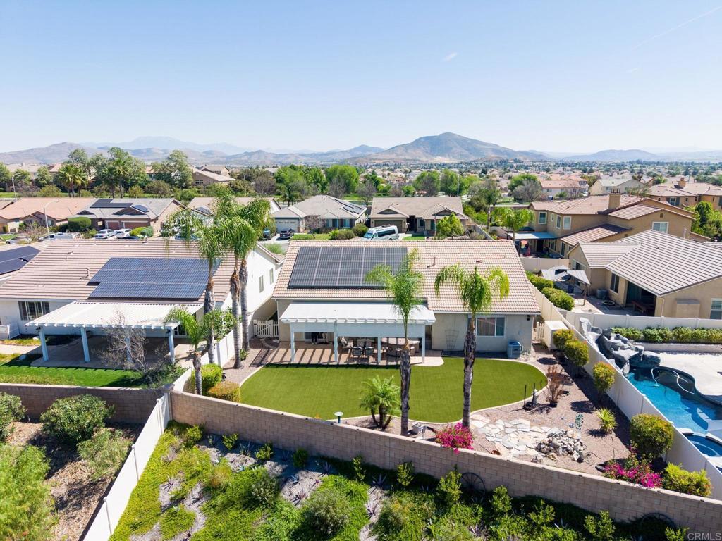 Privately positioned at the end of a cul-de-sac, this stunning single-story residence sits on a huge lot with breathtaking westward sunset views. Located in the highly desirable Spencer’s Crossing community, this 5-bedroom plus office, 3-bath, 2,760 sq. ft. home offers space, privacy, and thoughtful design throughout. A gated courtyard entry and extended turf front yard create exceptional curb appeal, setting the tone for the open and flowing floor plan inside. Beautiful wood-like flooring takes you effortlessly through the expansive layout, guiding you from the formal dining room into the heart of the home where the open kitchen shines. Featuring a broad center island, stainless steel appliances, abundant counter space, and a seamless connection to the living room warmed by a statement fireplace, this space was designed for gathering. Sliding glass doors frame views of the backyard and invite indoor-outdoor living. The flexible floor plan includes five bedrooms plus an office area, with one bedroom positioned in a private wing complete with its own 3/4 ensuite bath — perfect for guests or multigenerational living. Ceiling fans in every bedroom enhance comfort throughout. Retreat to the spacious primary suite, offering a soaking tub, walk-in shower, dual sinks, and an enormous walk-in closet. Step outside to an entertainer’s backyard, featuring an alumiwood patio cover, built-in BBQ and outdoor kitchen, stamped and colored concrete, turf, white vinyl and block fencing, fountain and pond accents, rain gutters, and professionally designed drainage. The sunsets from this west-facing yard are simply breathtaking. Additional highlights include a 25-panel paid-off solar system, separate additional parking in the front yard, laundry room with sink and cabinetry, pull-down ladder attic storage (approx. 125 sq. ft.), wrought iron courtyard gate, and low-maintenance turf with professional drip irrigation in the front, rear, and side yards. Enjoy the lifestyle Spencer’s Crossing delivers, offering multiple parks, clubhouse amenities, resort-style pools, a sports park, and more — all just moments from your front door. Single story. Cul-de-sac. Huge lot. Paid solar. This home checks every box.